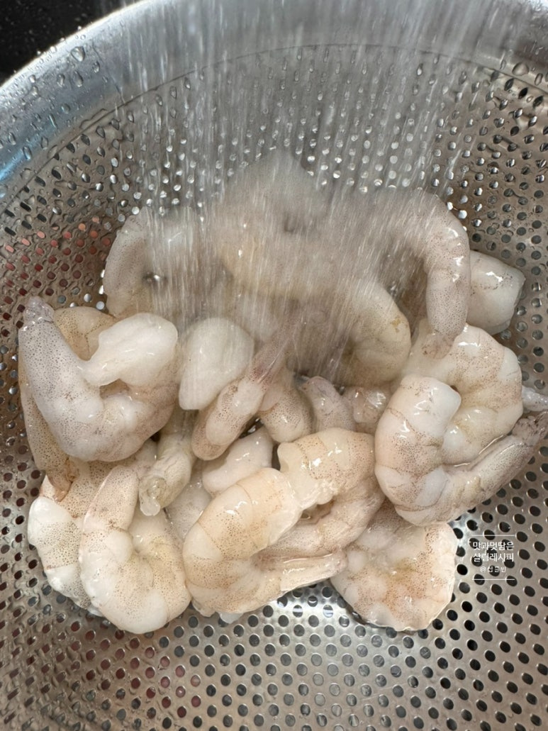 새우는 미리 자연해동 해주었고 흐르는 물에 헹구어 세척한 뒤 물기를 제거합니다.