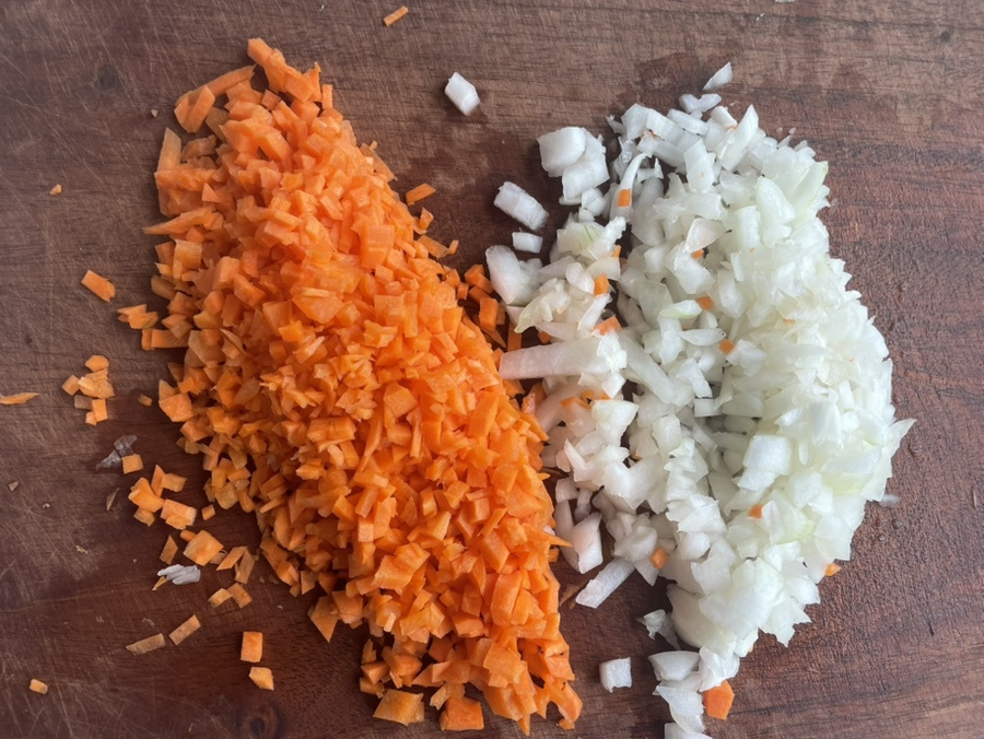 양파와 당근은 곱게 다져 주세요.