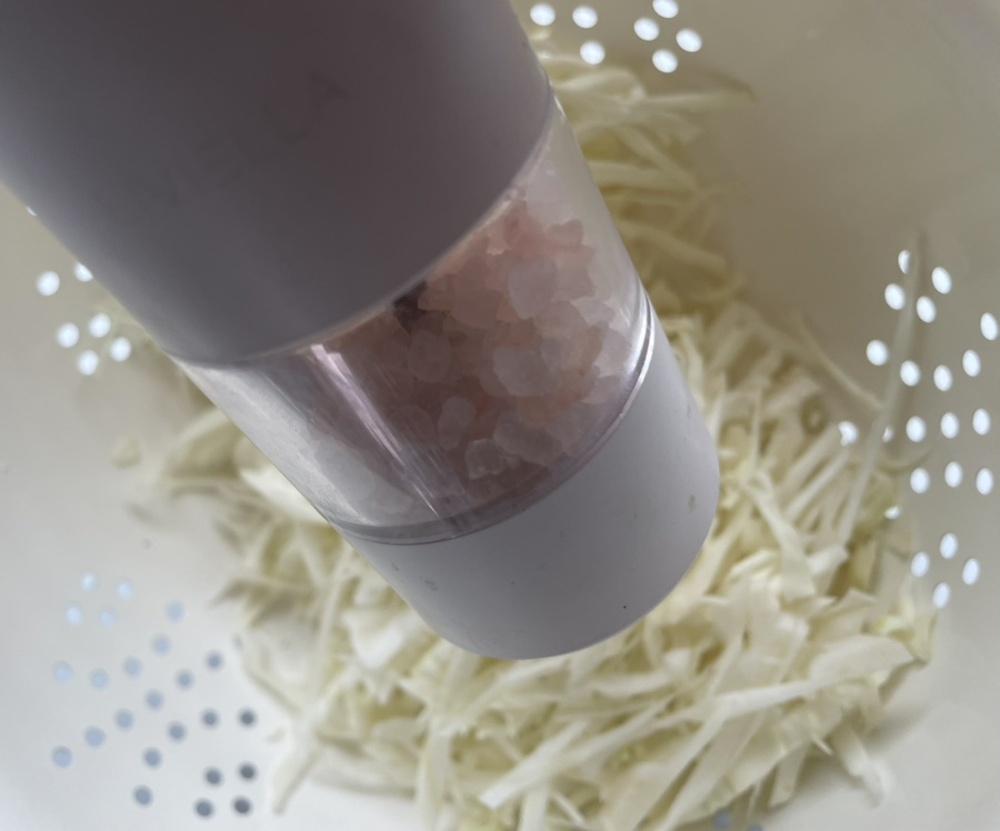 소금 3꼬집 뿌려 10분 정도 절여 주세요.