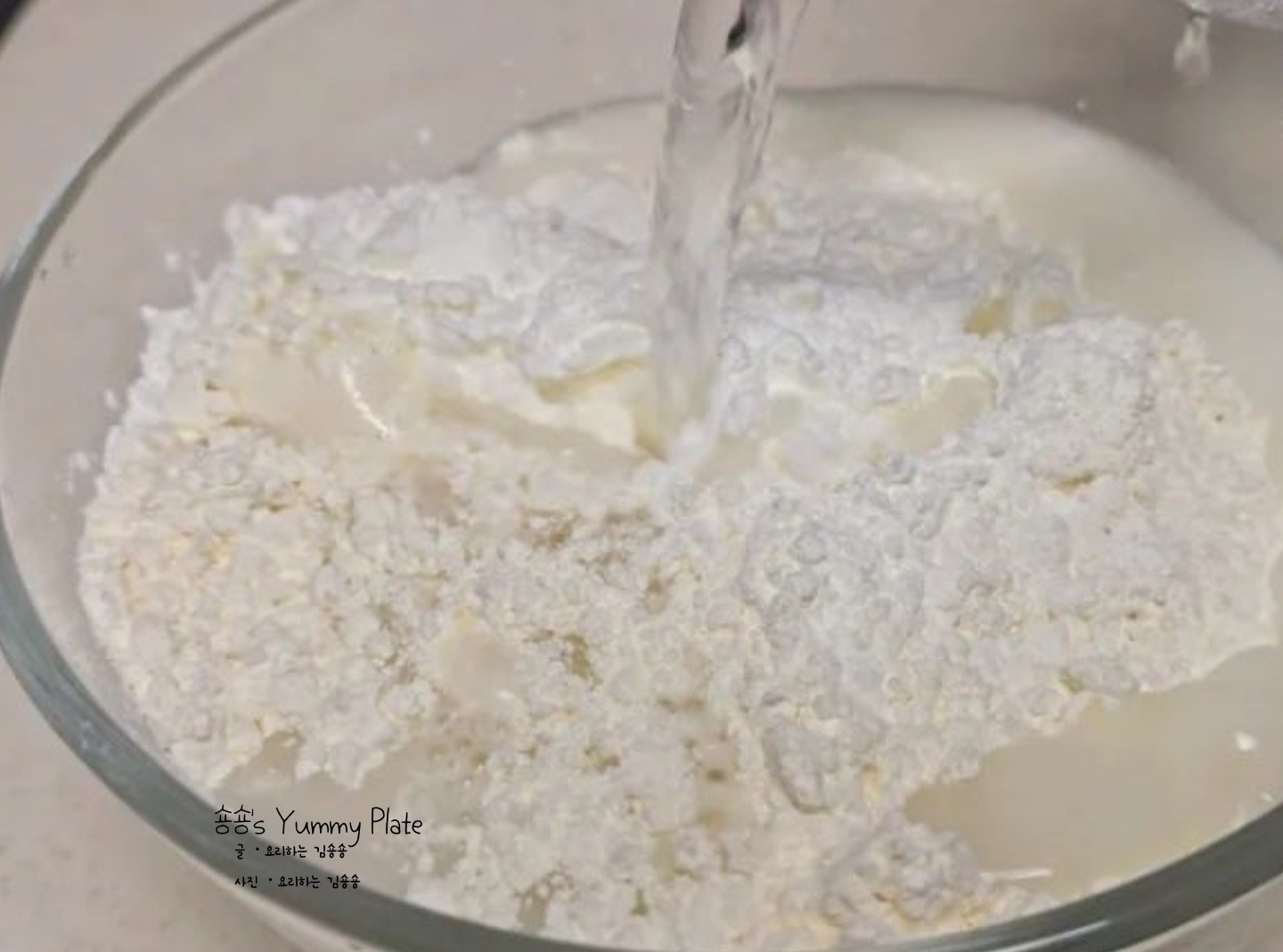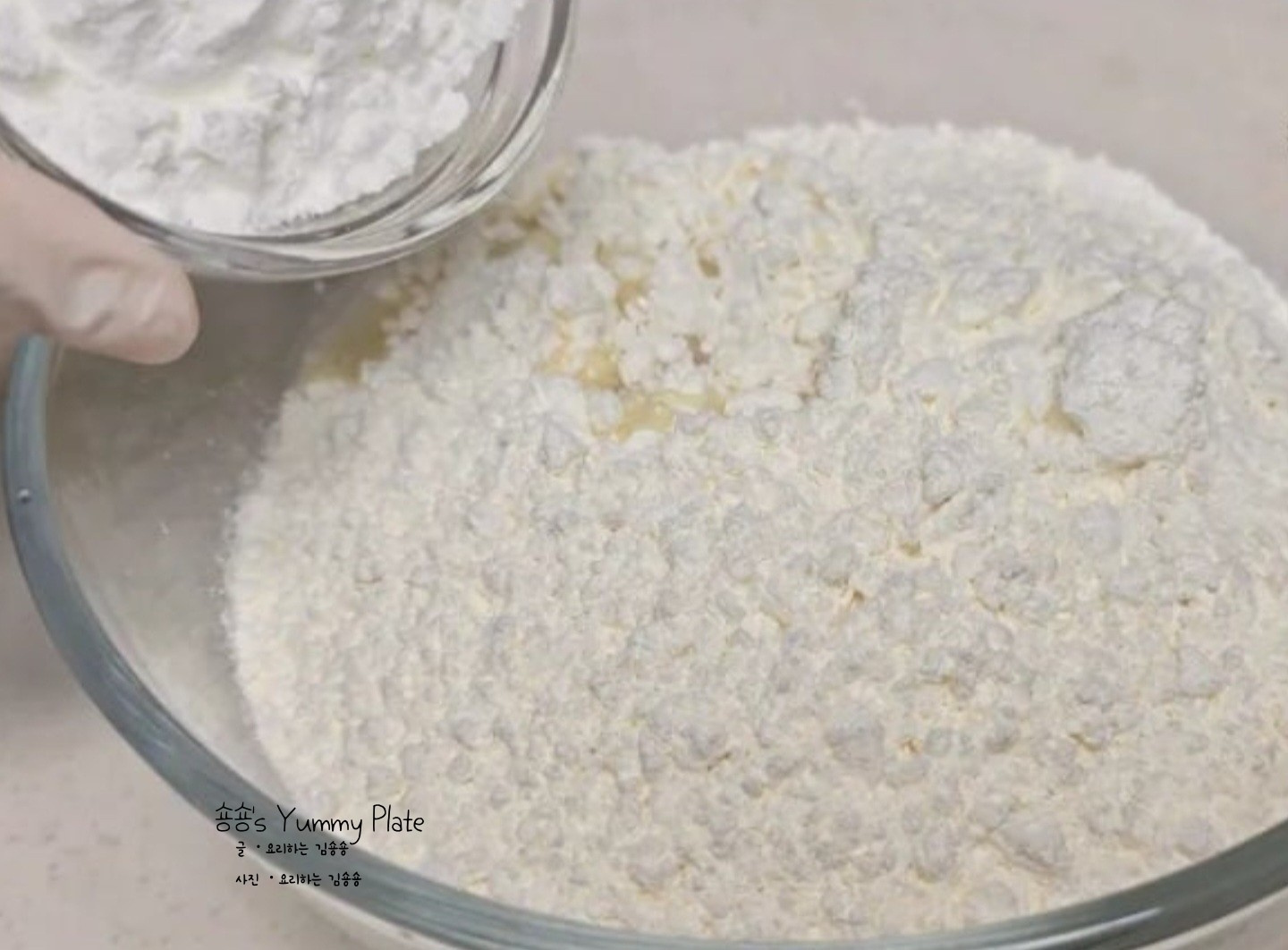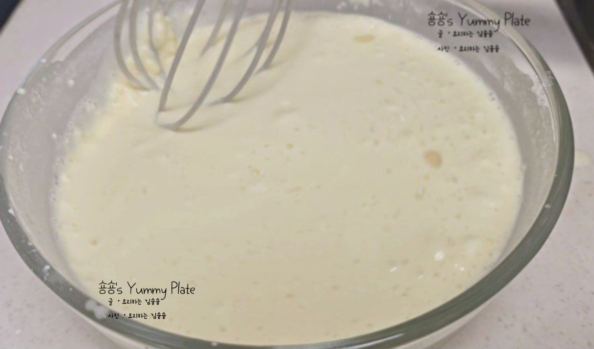 볼에 넣은 재료들은 반죽이 덩어리지지 않도록 부드럽게 잘 섞어주세요.