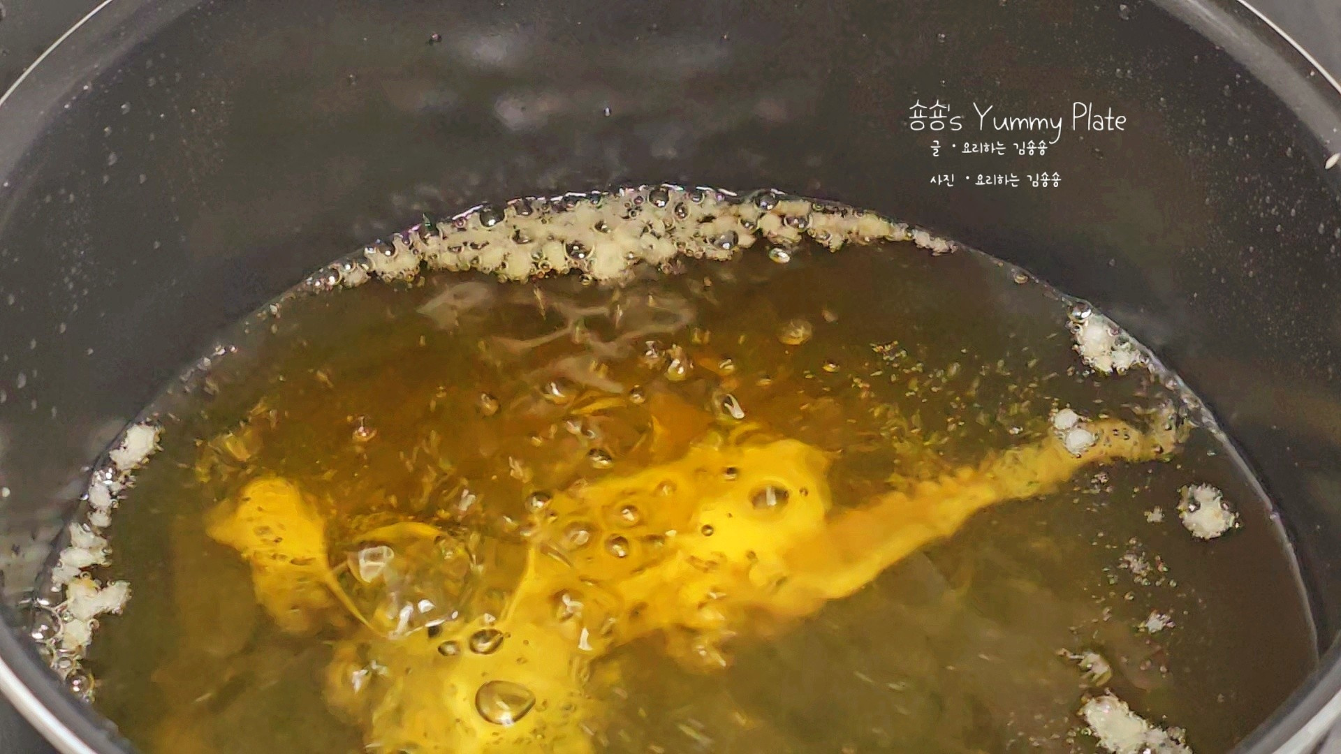 기름솥에 식용유를 넉넉히 붓고 강불에서 예열해 주세요.