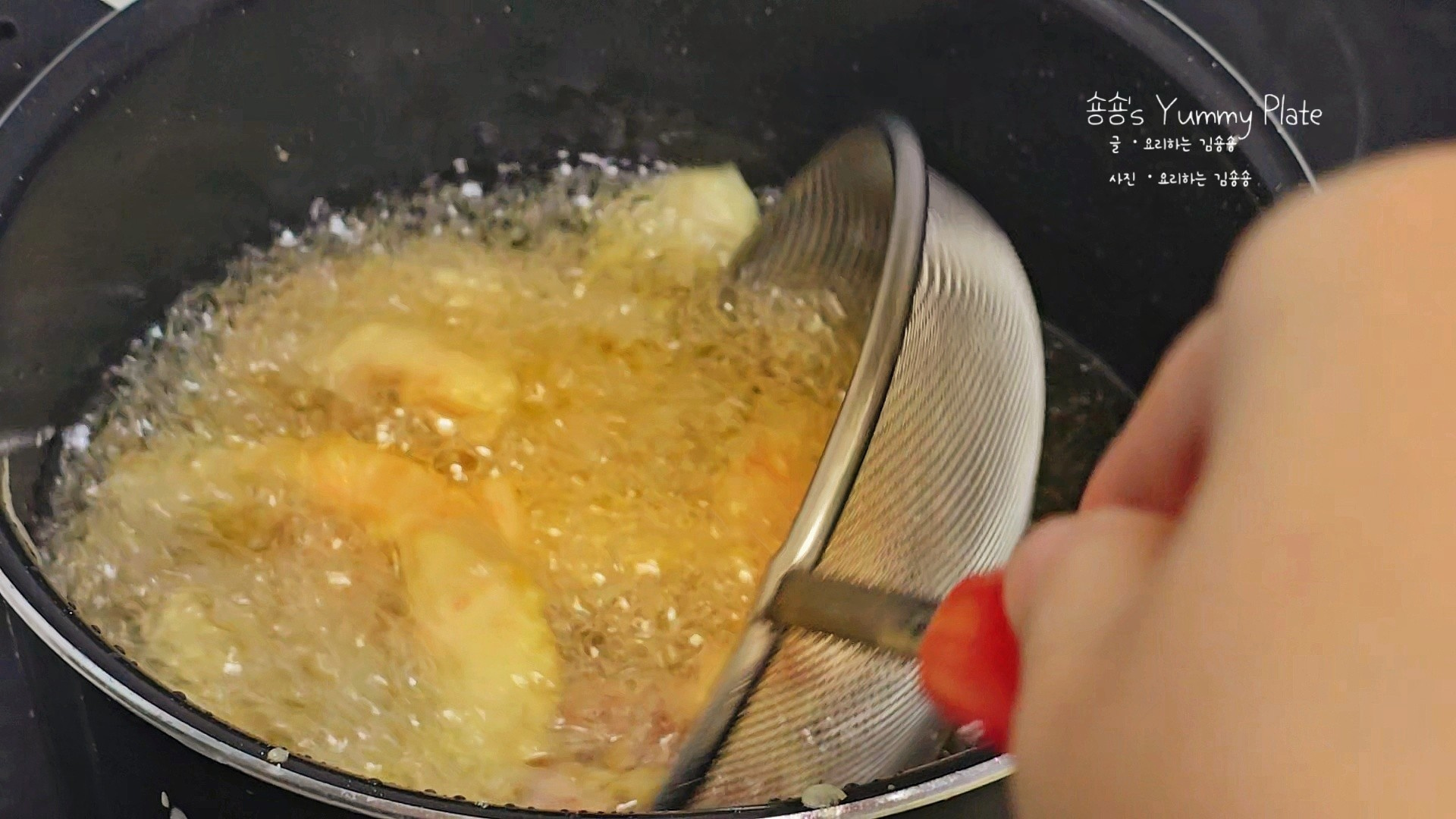 ✨Tip. 너무 많이 한꺼번에 넣으면 기름 온도가 떨어져 바삭하지 않으니 넣는 양을 나눠서 튀기는 게 좋아요!