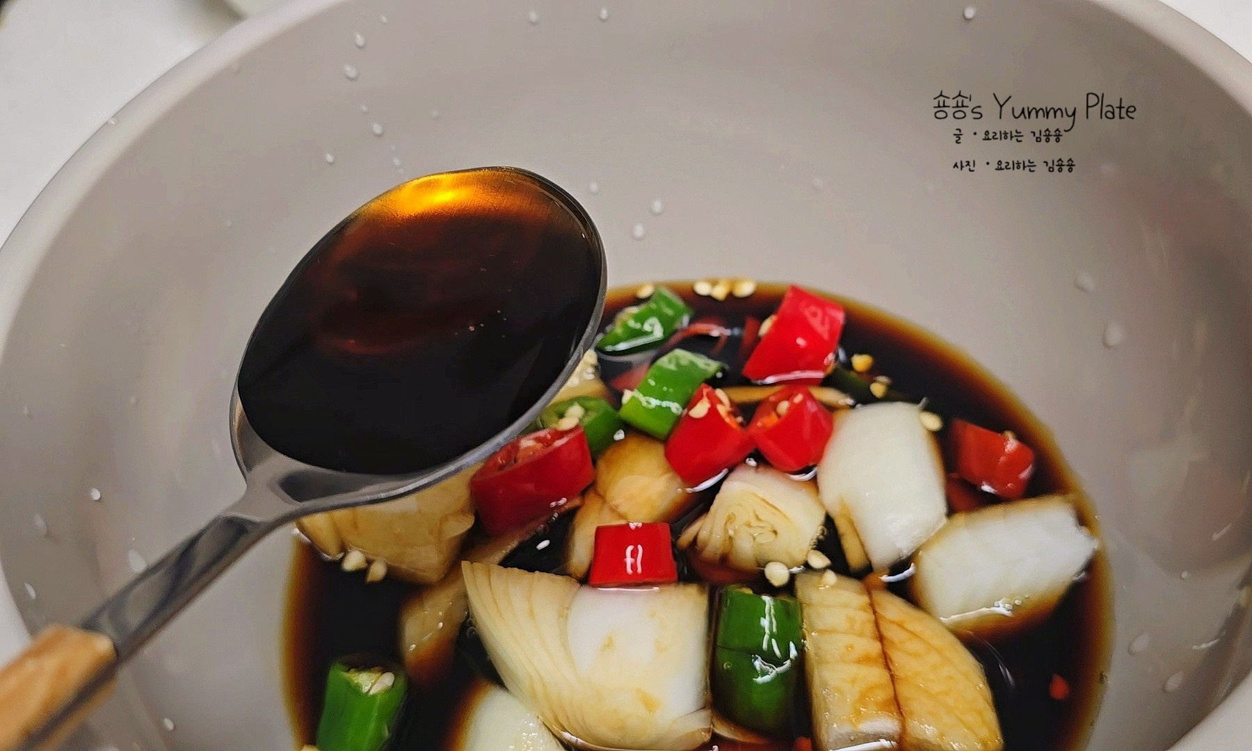 양조간장 5 T , 매실청 1 T , 식초 1 T