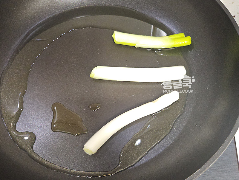 프라이팬을 충분히 달군 뒤 식용유를 넉넉히 둘러주세요.