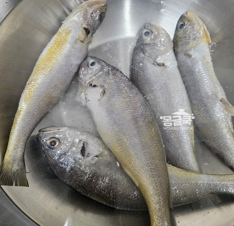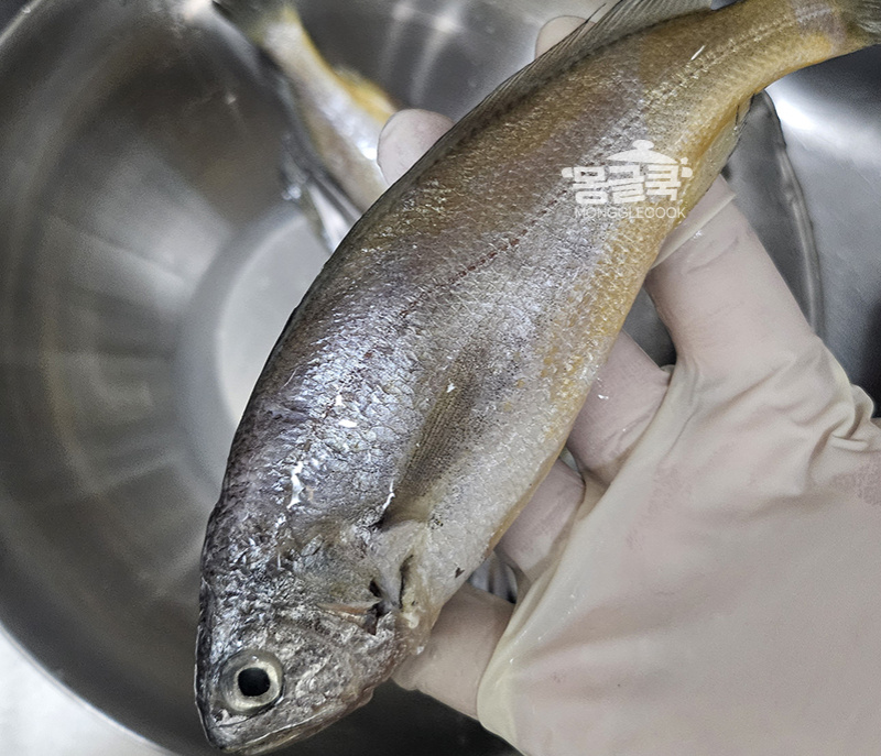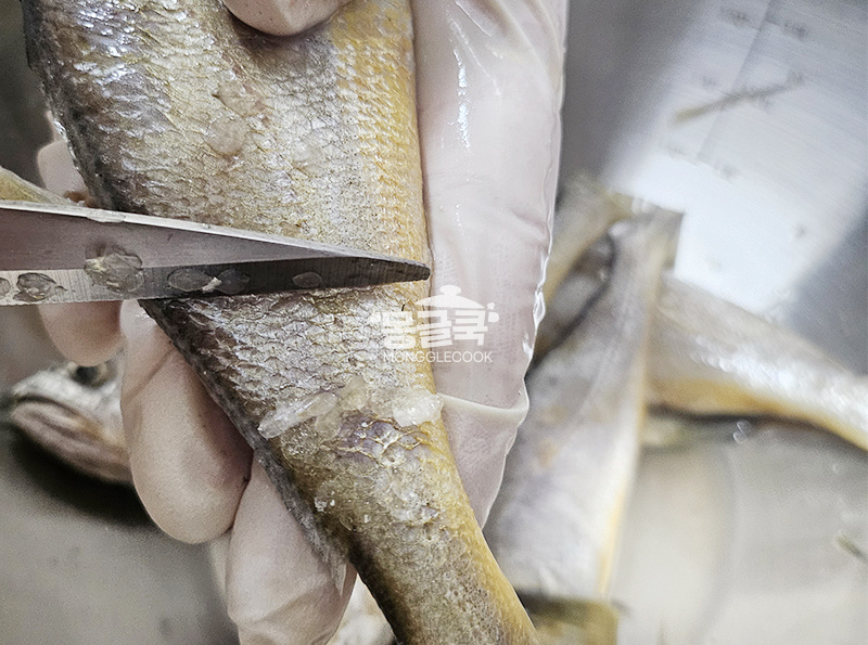 내장을 제거한 조기는 흐르는 물에 깨끗이 헹군 뒤,