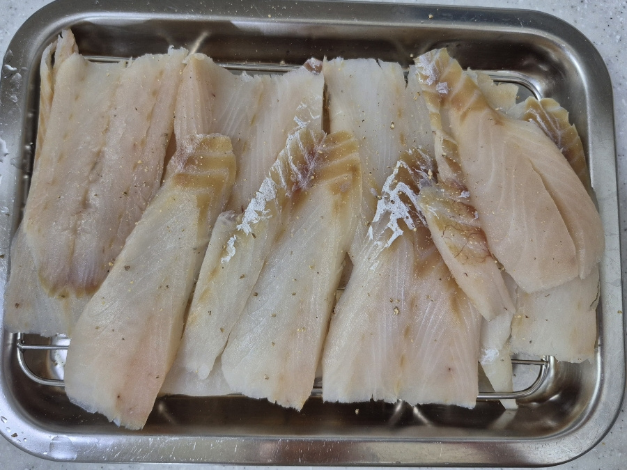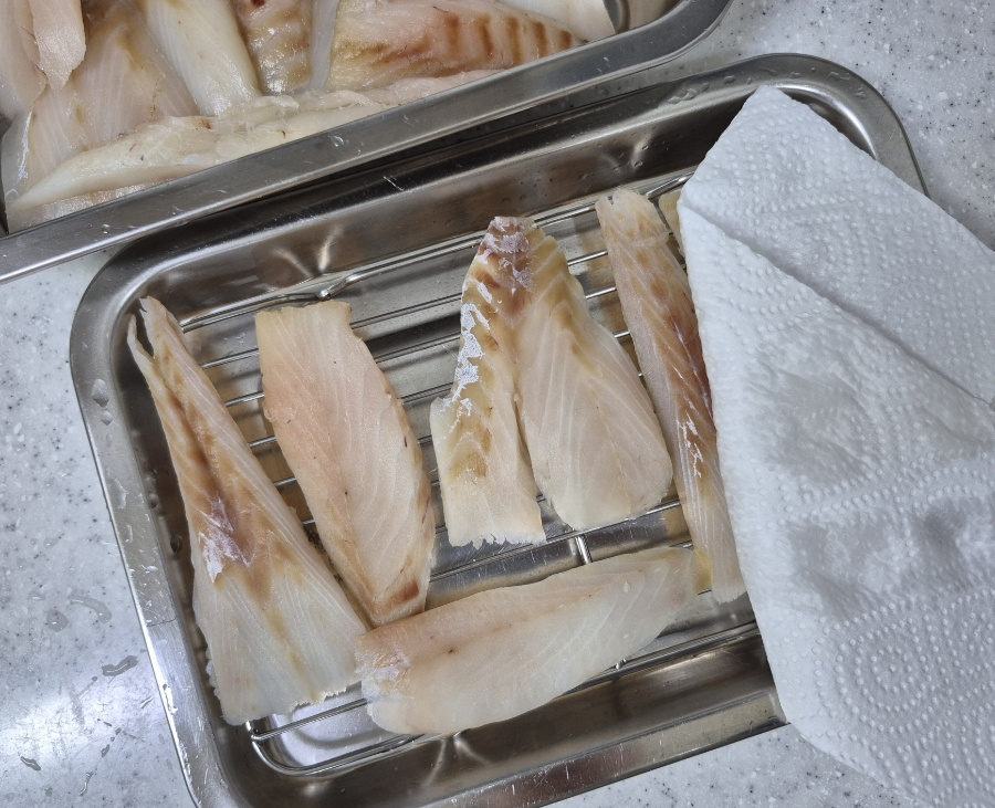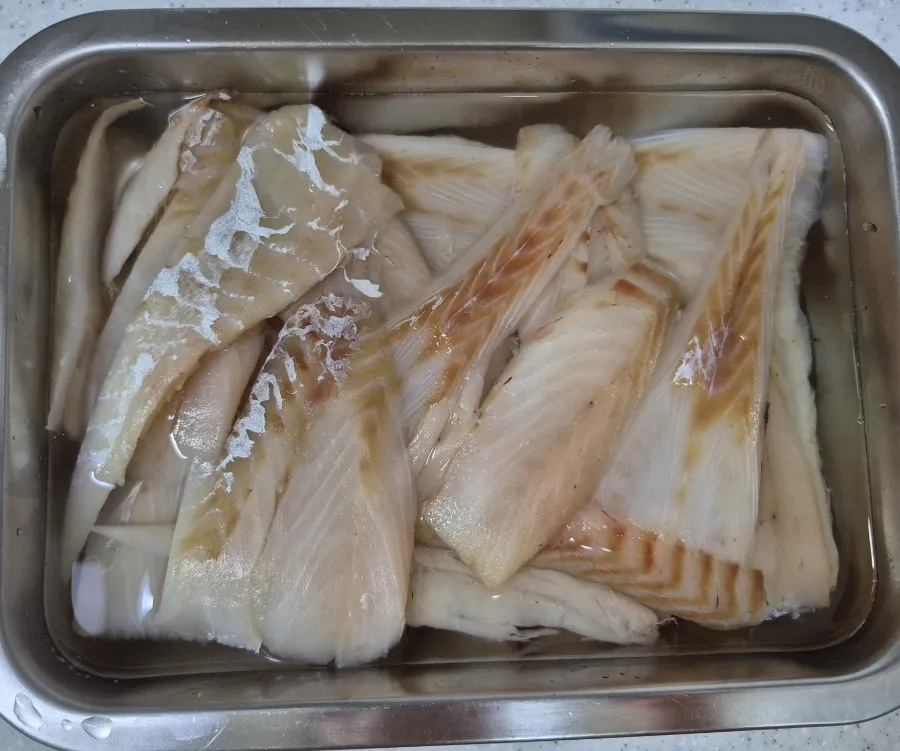 너무 오래 담가두면 짠맛이 강해지고 생선살이 질겨질 수 있으니 10분 이내로 가볍게 담가 주세요.