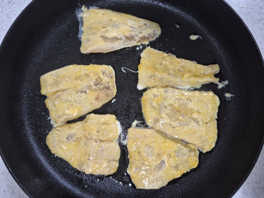 불이 세면 안까지 익기 전에 겉면이 타 버릴 수 있으니 중약불로 부쳐 주세요.