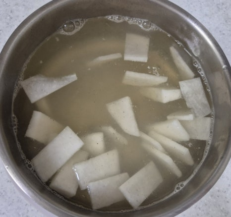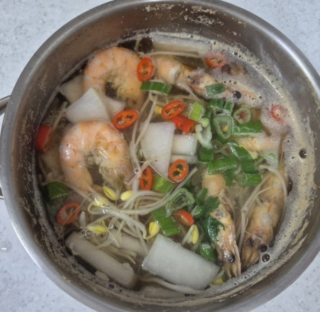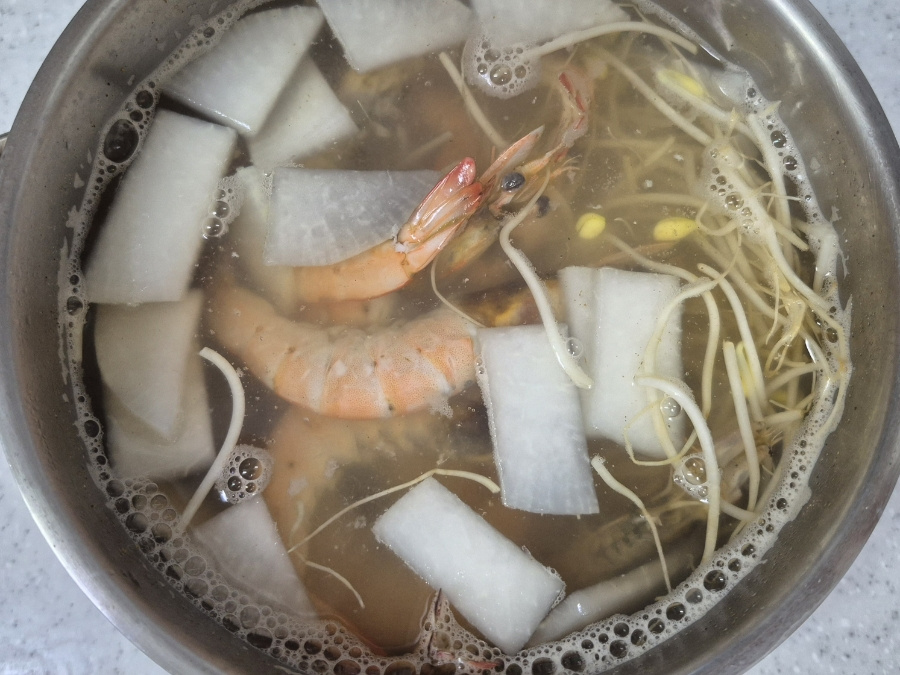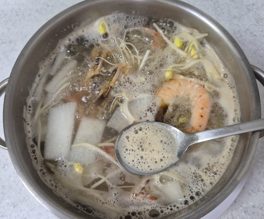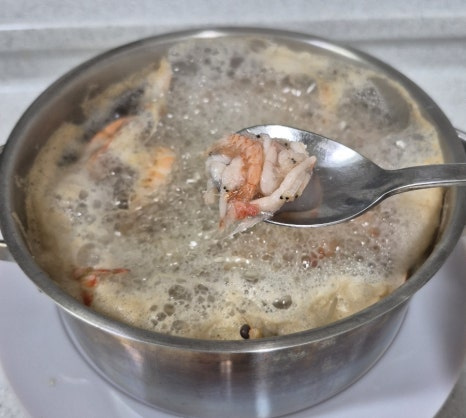 끓으면서 거품이 많이 일어나니 뚜껑을 열고 넘치지 않게 끓여 주세요.
