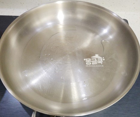 팬을 강불에 올려 뜨겁게 연기가 살짝 날 때까지 달궈주세요.