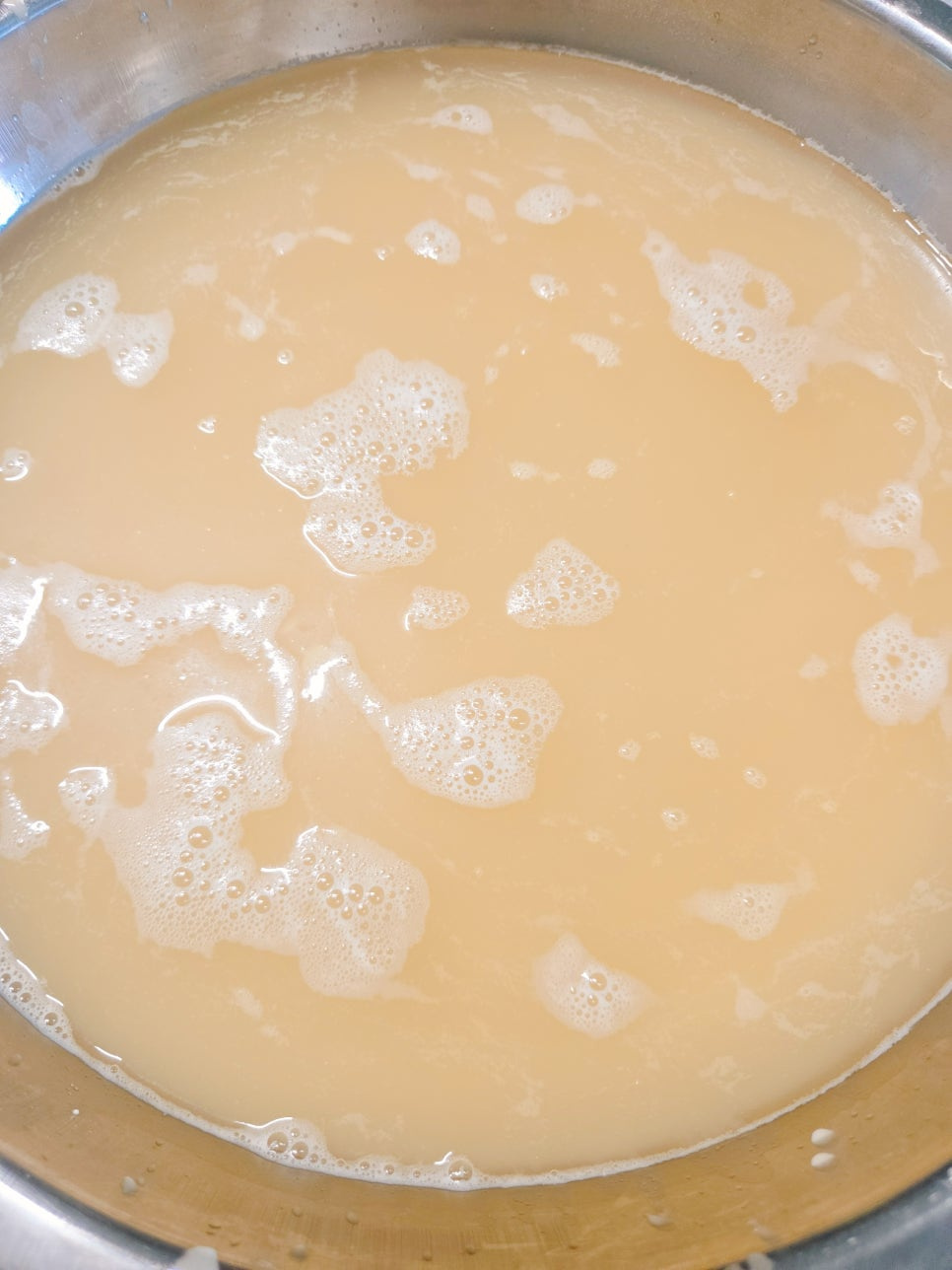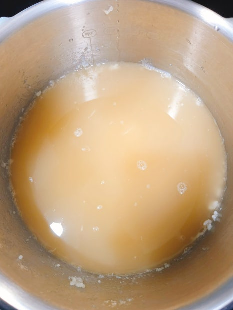 *사진을 찍지 못했는데 천천히 붓다보면 아래 하얀 앙금이 보이는데 그게 최대한 섞이지 않게 부어주시면 됩니다 *밥은 저는 밥솥에 남은밥 그냥 부어 주었어요