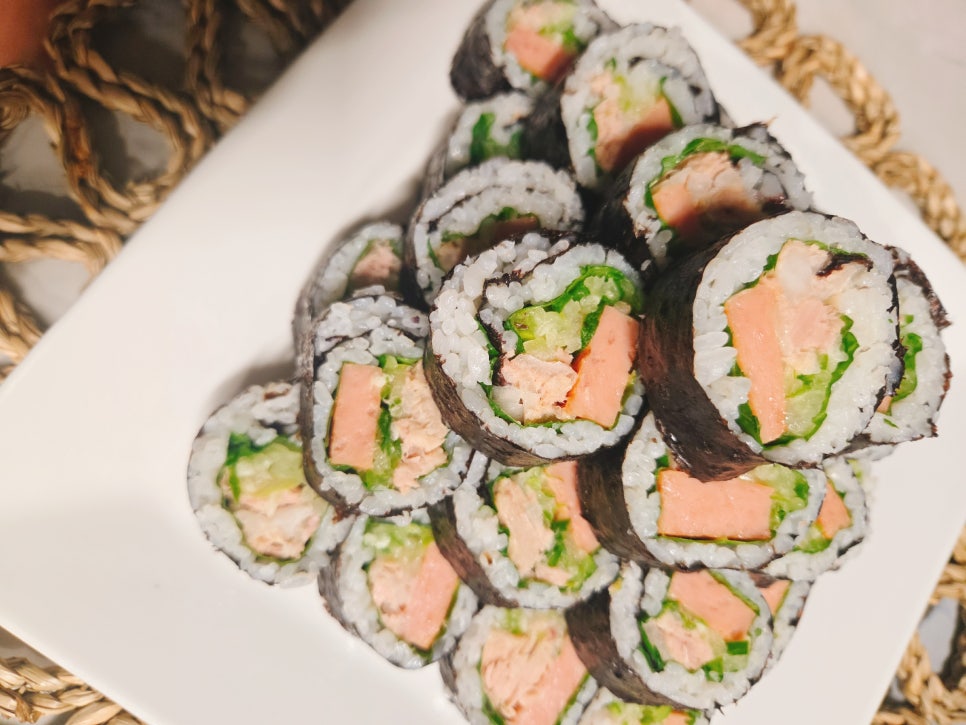밥올려 주시고 깻잎 스팸 오이 참치마요올려서