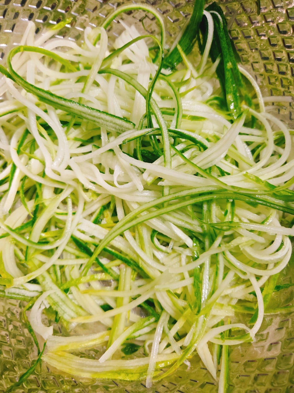 겉쪽만 길고 얇게 채썰어서 준비해주세요