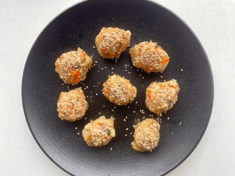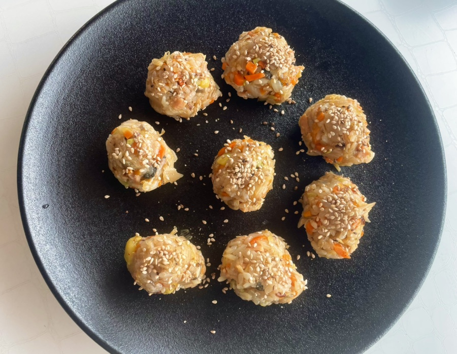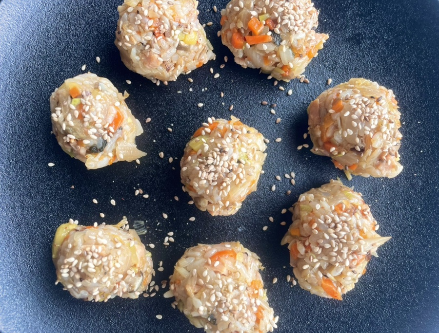 참깨에 주먹밥을 굴려 줘도 좋고 주먹밥에 참깨를 듬뿍 뿌려줘도 좋아요.
