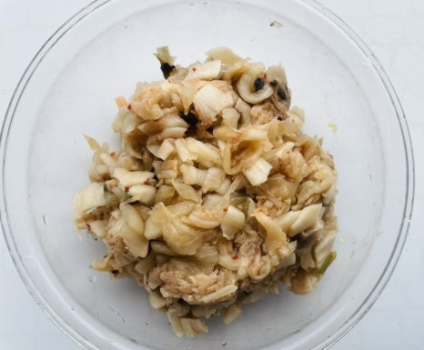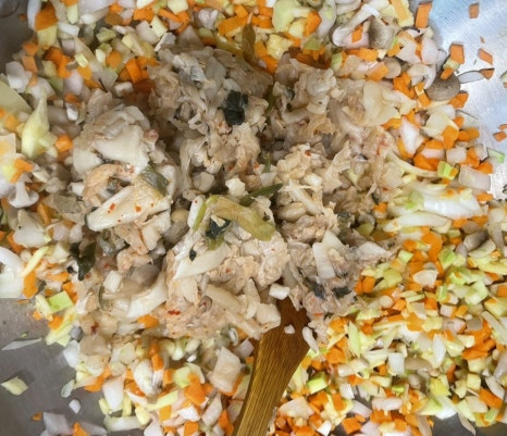 김치의 양이 좀 많아 보여도 잘게 다져서 물기를 꼭 짜주면 양이 줄어 들고 짠맛도 줄일 수 있어서 많이 넣어도 부담스럽지 않아요.