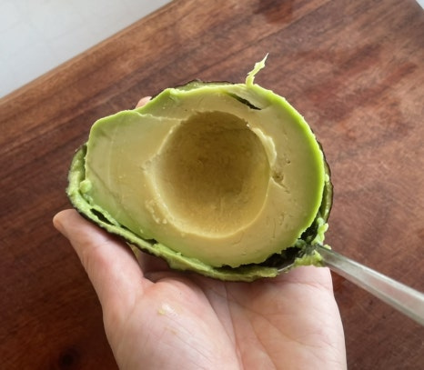 아보카도는 반을 잘라 숟가락으로 과육을 떠내요.