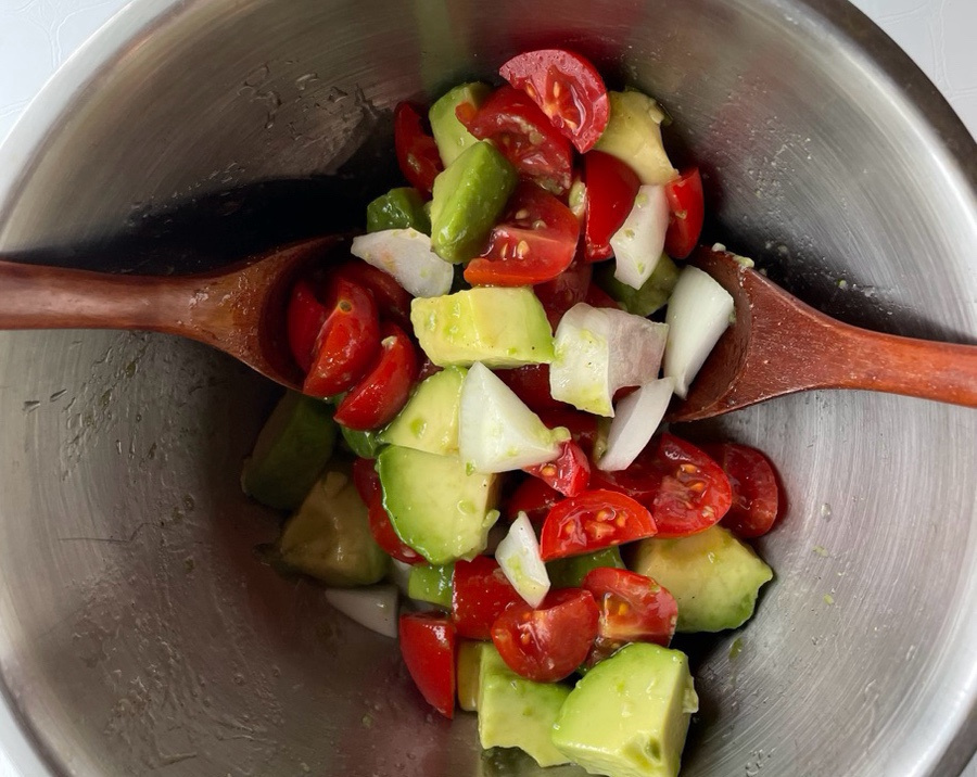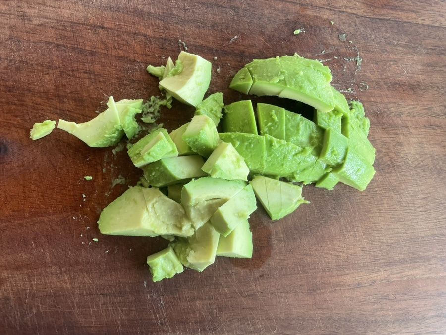 으깨는 거 보다 비주얼도 더 신선해 보이고 맛은 과카몰리소스와 같으니 샐러드로 먹어도 좋고 오픈 샌드위치로 빵위에 얹어 먹어도 넘 맛있어요.
