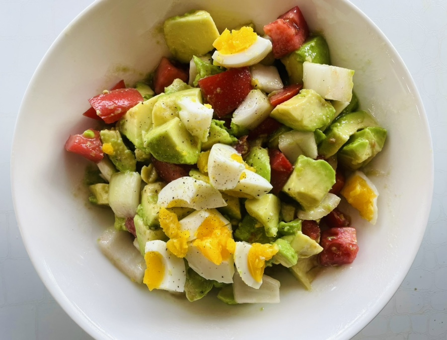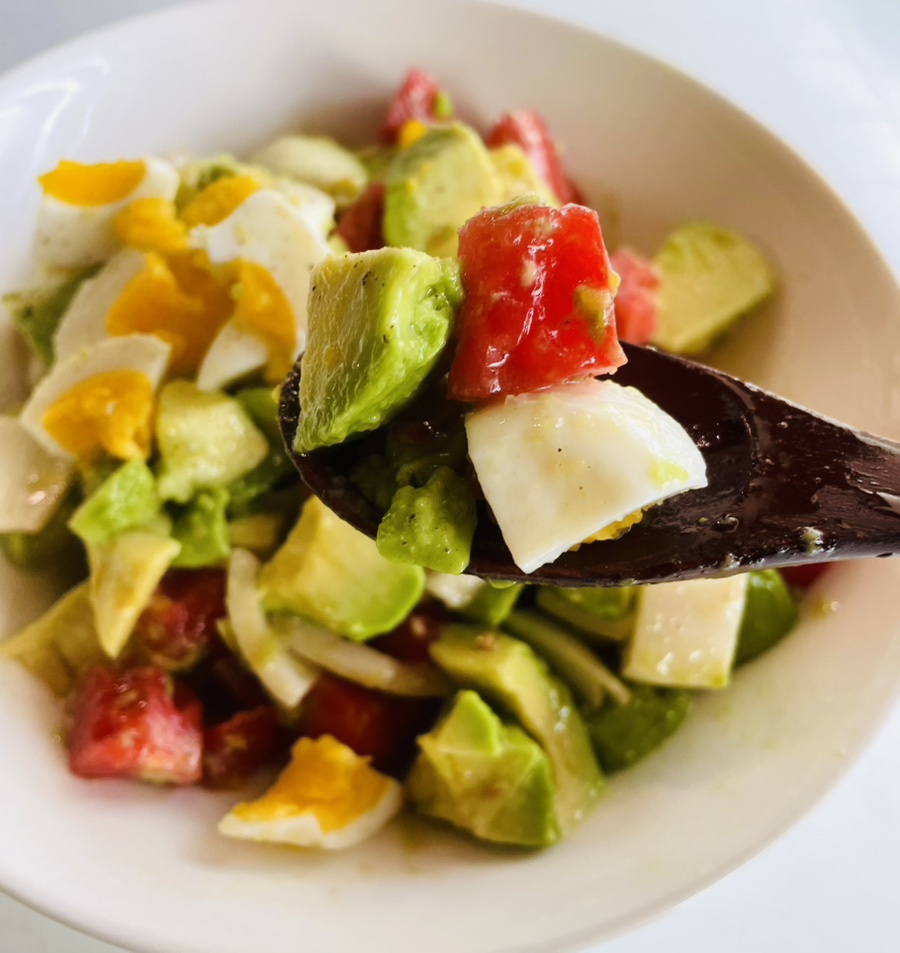 며칠 전에 사 놓은 아보카도가 익기를 이제나 저제나 기다리고 있었는데 오늘 아침에 2개가 딱 먹기 좋게 익어서 아보카도와 토마토 양파, 삶은 계란을 과카몰리 소스에 버무려 상큼하고 달콤한 과카몰리 샐러드를 만들었어요.