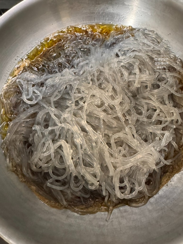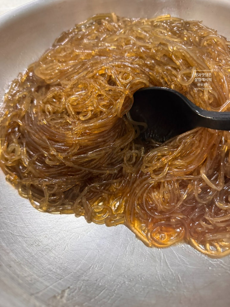 각 재료들 휘리릭 볶아 준비한 뒤 당면 꼬들꼬들하게 시간 잘 맞춰 부드럽게 끓여 헹구어 주고요. 여기에 끓여 준비한 분량의 간장 양념에 모든 재료 넣고 휘리릭 비비듯 볶아내면 뚝딱 완성입니다. 간단한 레시피로 누구나 쉽게 만들 수 있는 간단 잡채 만드는 법 차근차근 소개해 드립니다.