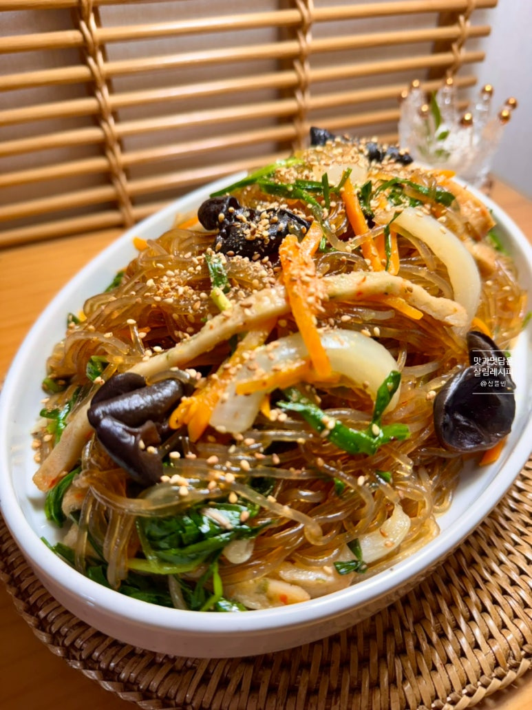 면 요리이지만 다양한 채소류 가득 넣고 볶아낼 수 있어 야채 섭취도 충분히 할 수 있어 좋은 메뉴로 긴 연휴 기간 명절 분위기 한껏 낼 수 있는 메뉴로 잡.채 맛있게 만들어 푸짐한 한상 차려보시길 바랍니다.