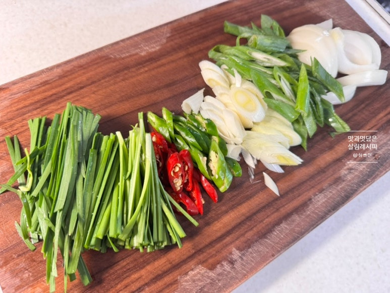 함께 넣고 볶은 부추도 맛있지만 생부추 따로 준비해 함께 올려 먹어도 정말 맛있어요. 풍미 가득 살리면서 먹을 수 있는 방법이고요. 상추나 깻잎, 배추 등 다양한 쌈 채소와 곁들여도 꿀맛입니다.