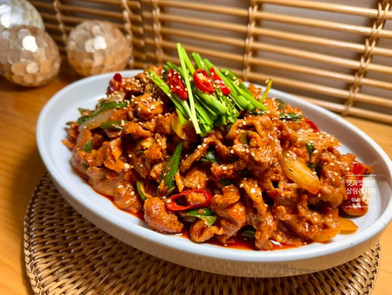 일반 제육볶음 만들듯 고추장 양념에 재어 휘리릭 볶아주면 되기 때문에 누구나 집에서 전문 식당에서 먹는 오리요리 만들 수 있고요. 자체에서 나오는 기름기로 지글지글 센 불에 구워내듯 볶아 돼지고기 이상으로 훨씬 맛있는 고추장 제육 만들 수 있어요.