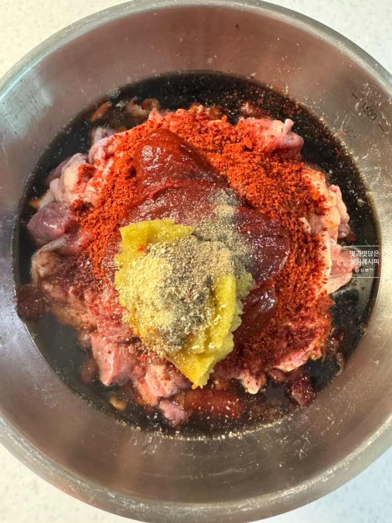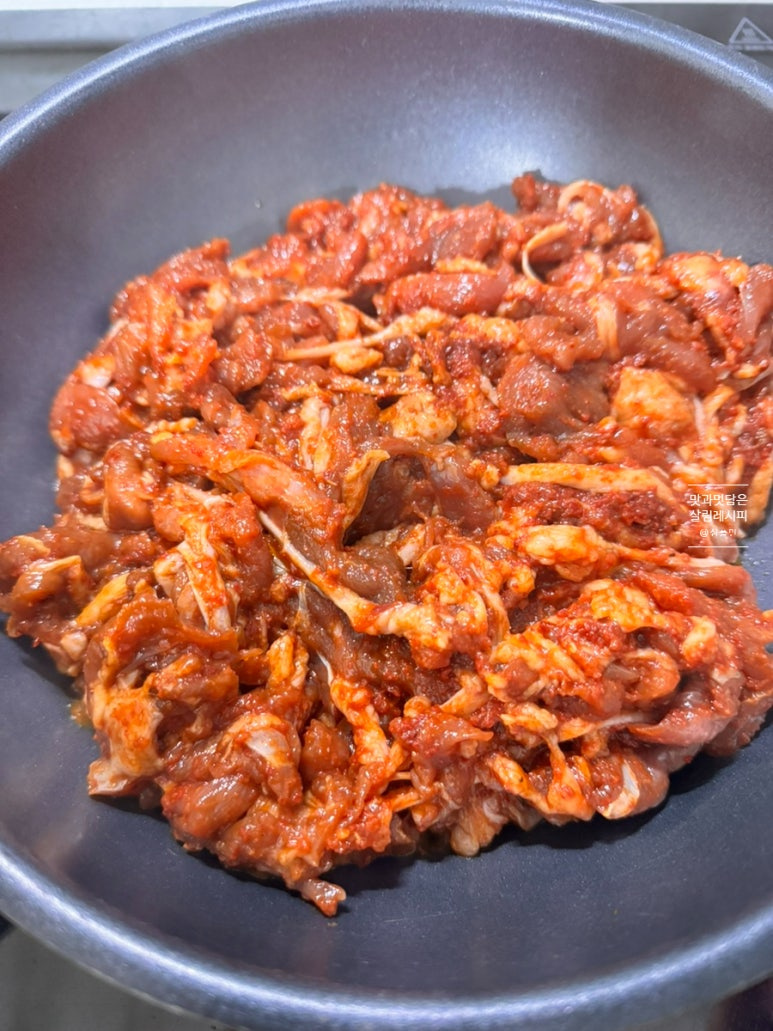 쉽게 냄새가 날 수 있기 때문에 신선할 때 바로 조리하는 것을 추천하고요. 핏기 수분을 꼼꼼히 제거한 뒤 소주나 청주 넣고 미리 버무린 뒤 양념해 주도록 합니다.
