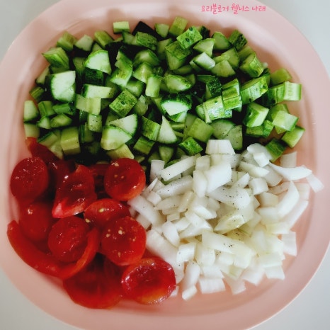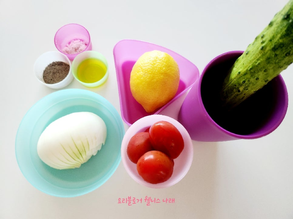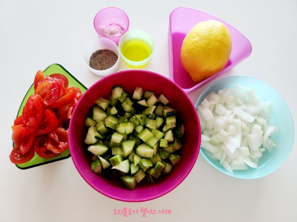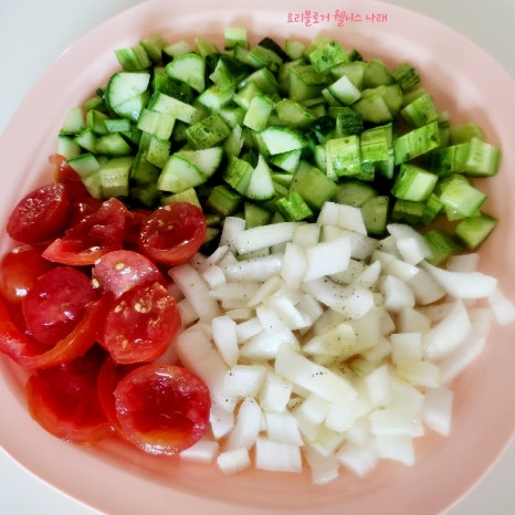 오이 양파 토마토 샐러드를 만들어볼게요.