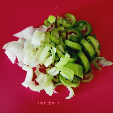 4 기름 뺀 참치에 썰은 대파 넣어주시고