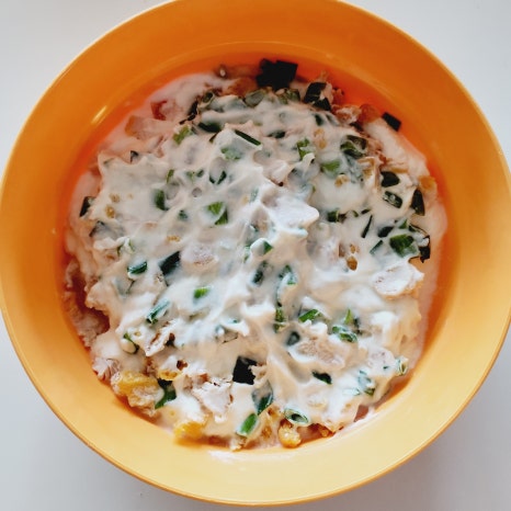 잘게 썰어둔 치킨텐더까지 넣어주어