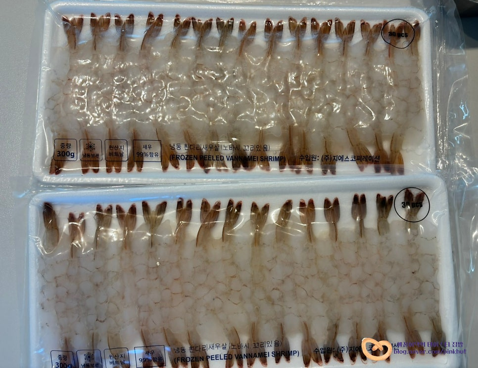 노바시새우는 30미짜리 2팩 총 60미를 준비했어요. 주로 냉동 상태로 판매가 되기 때문에 하루 전날 냉장실로 옮겨서 자연해동해 주면 되세요