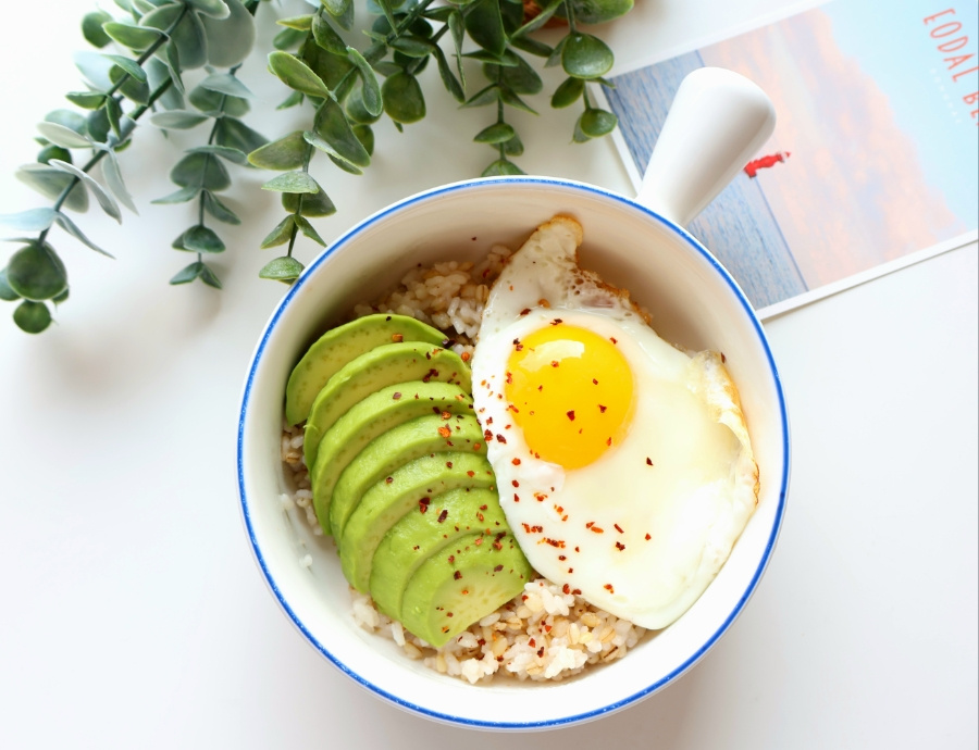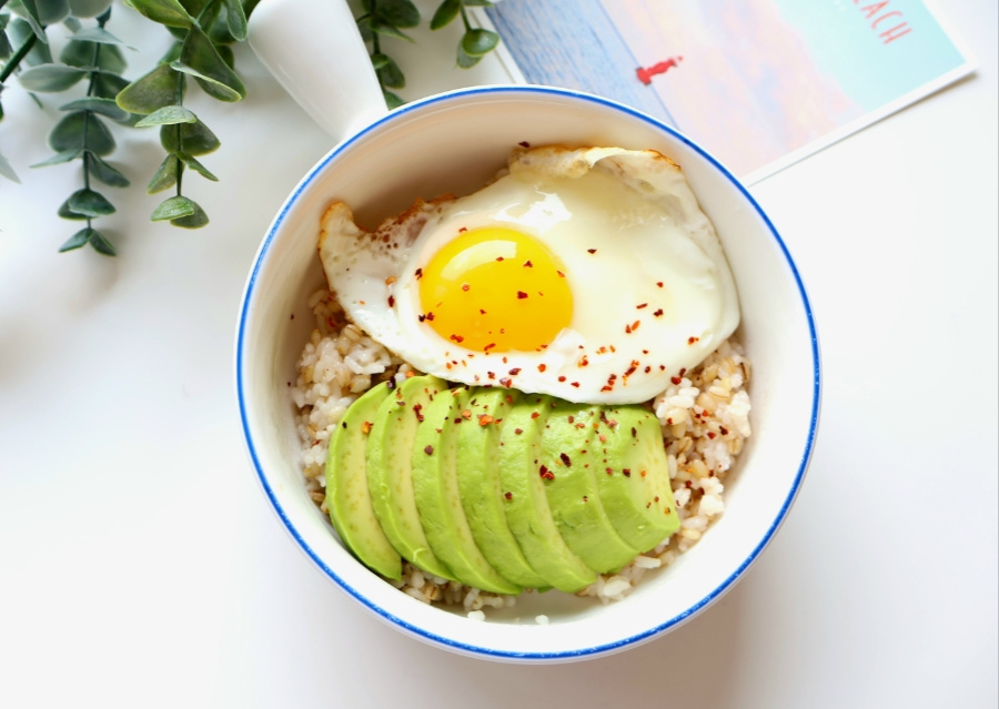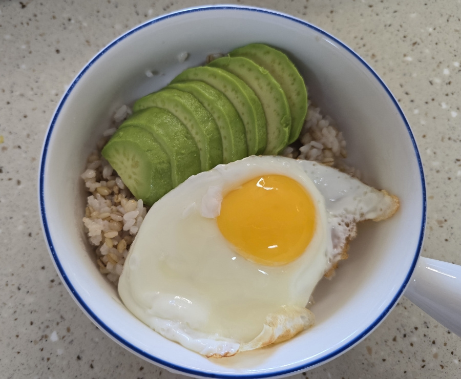- 아보카도 반개 달걀 1개 밥 한 공기 맛간장 or 진간장 1 레드 페퍼 약간 (선택 사항) 식용육 약간 , 계량 : 밥숟가락