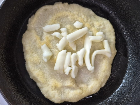 겉면이 튀겨지듯 바삭하게 부쳐지도록 식용유의 양을 넉넉히 둘러 주세요.