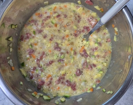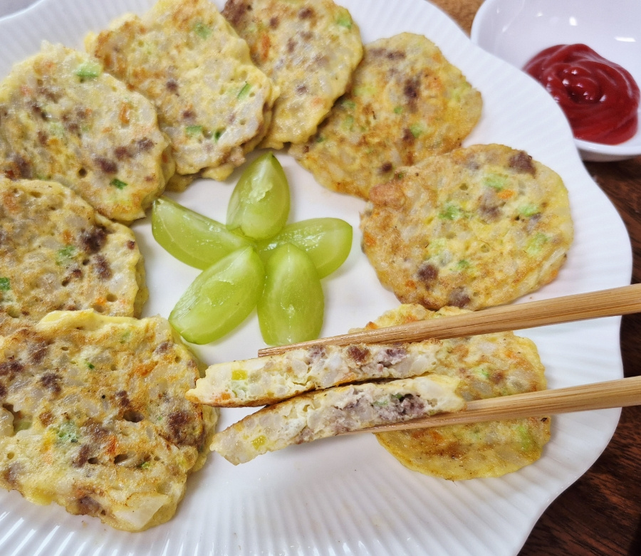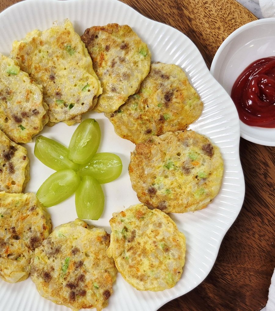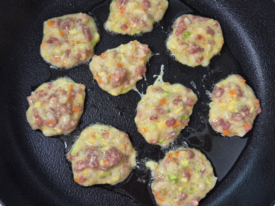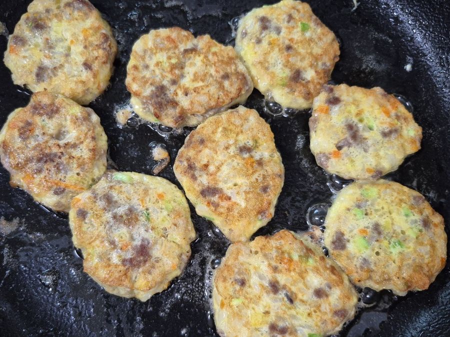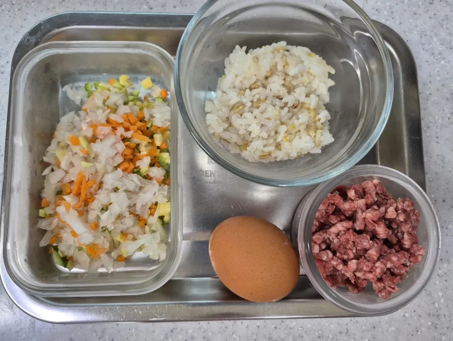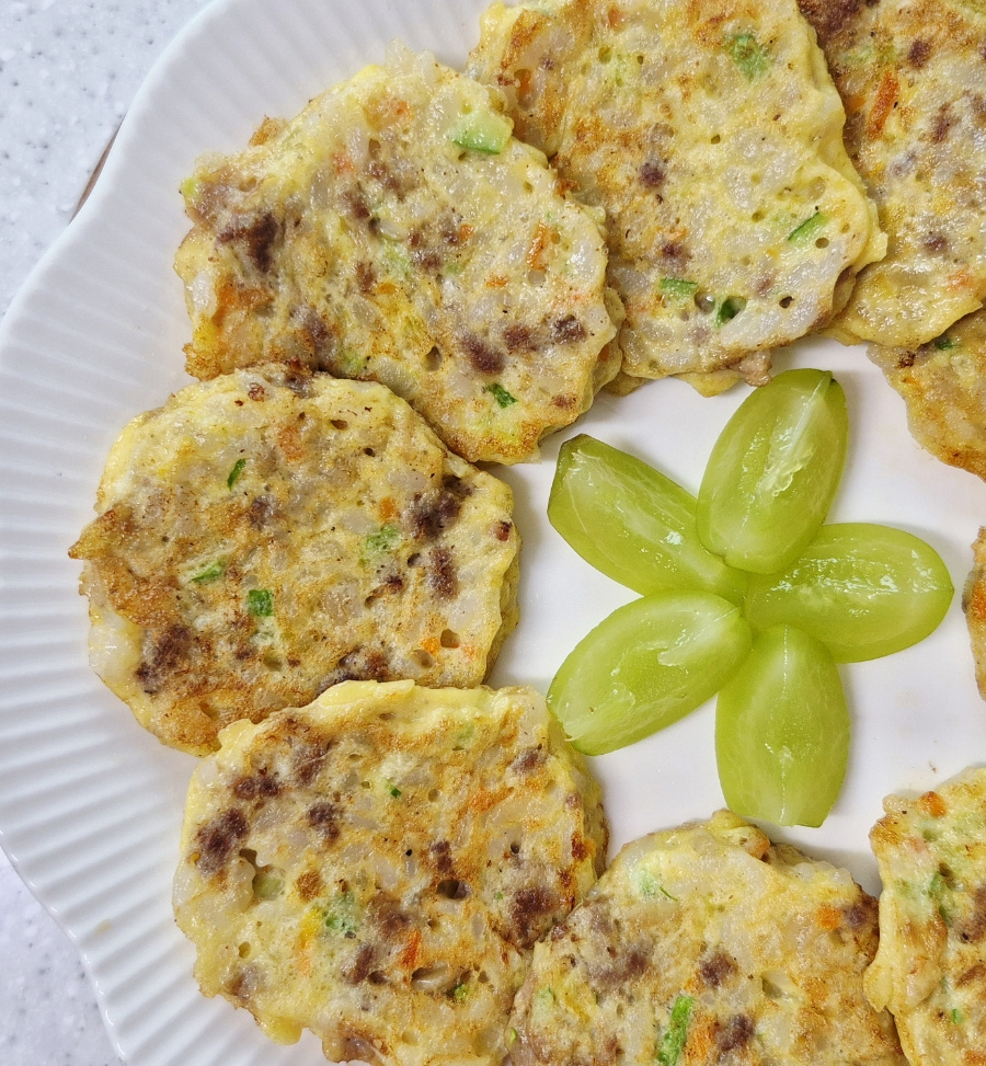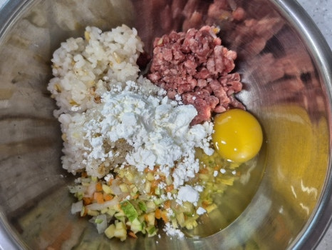 밥이 뜨거우면 다짐육이 익으며 다른 재료들과 찰기 있게 섞이지 않으니 식힌 뒤 반죽에 넣어야 해요.