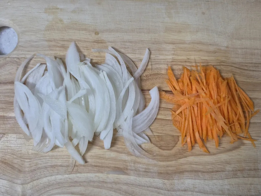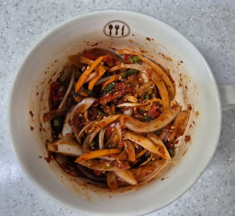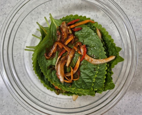 재료들을 두껍지 않게 썰어 주어야 양념장에 섞어 깻잎 사이에 바르기가 좋습니다.