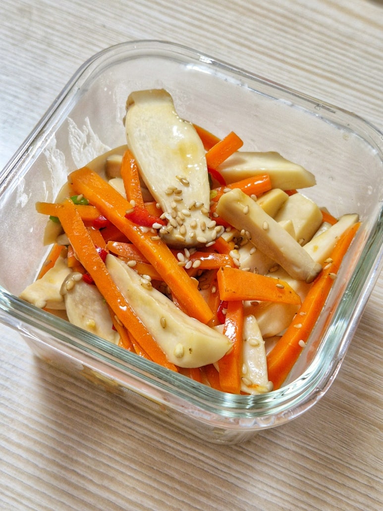 재료새송이버섯 380g당근 1/3개청양고추 1/3개진간장 1/2T들기름 적당량깨 적당량
