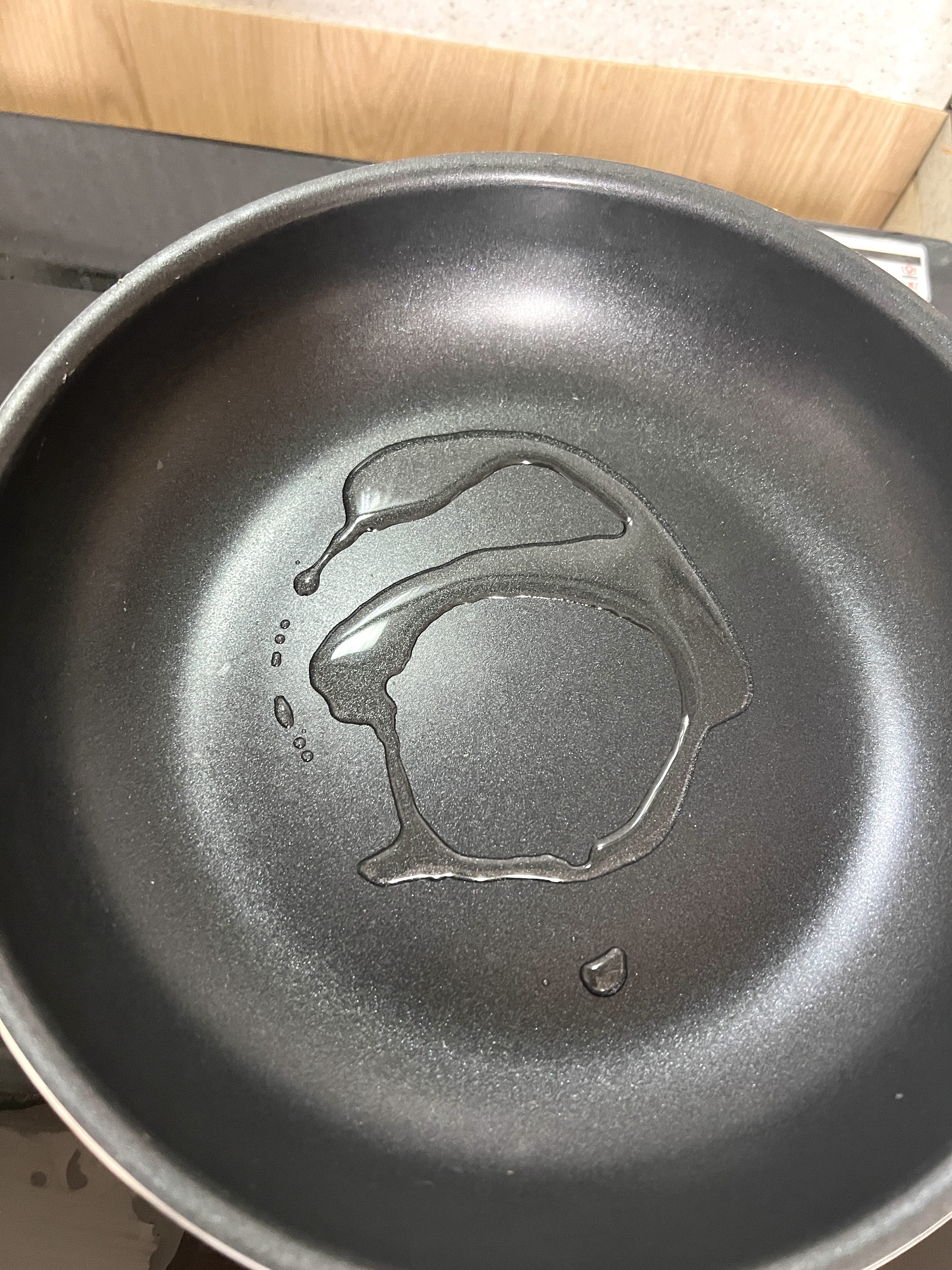 팬에 식용유를 두르고 달궈 주세요.