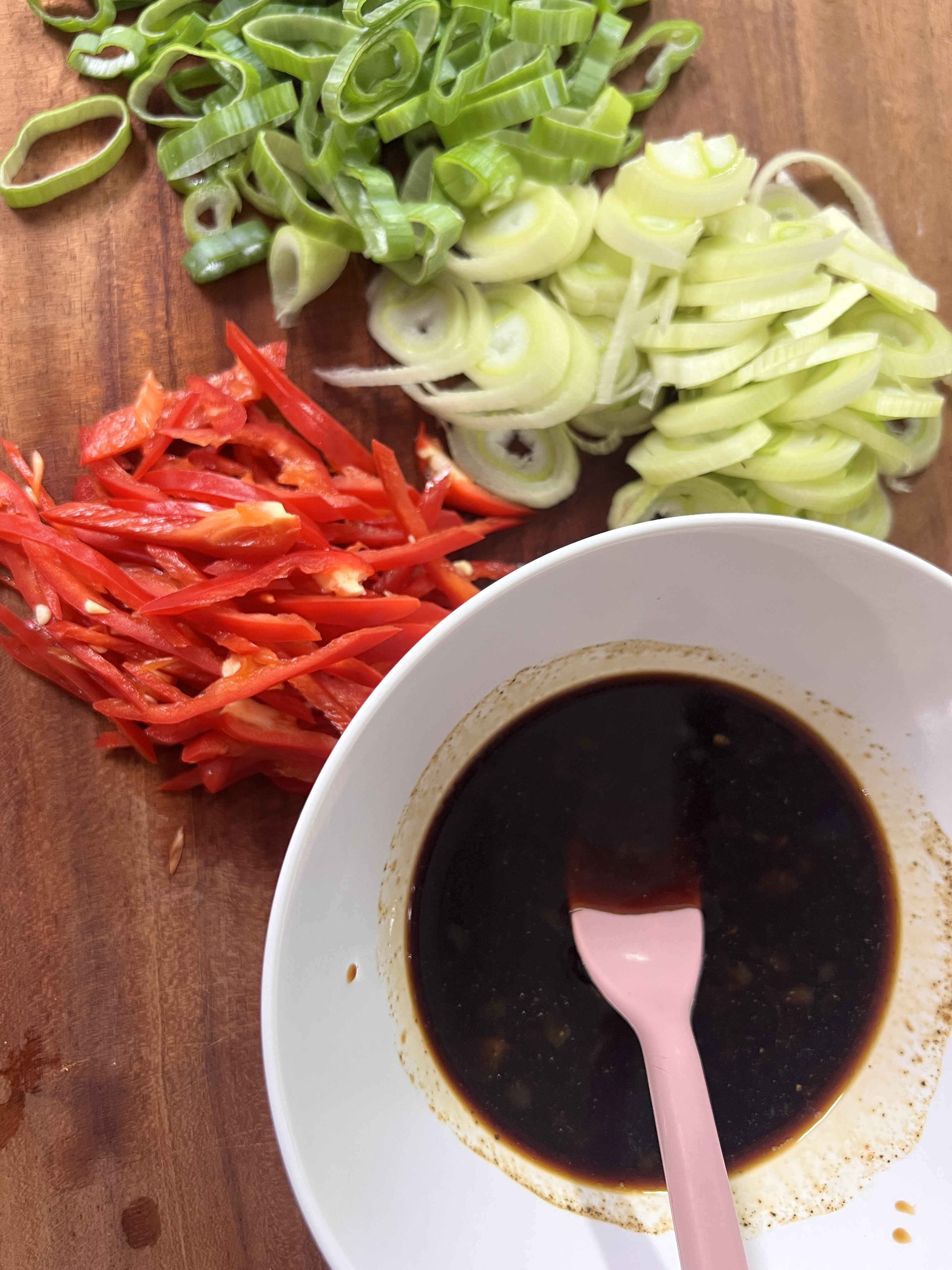 설탕 0,5tbsp, 간장 2,5tbsp, 올리고당 1tbsp, 다진 마늘 1tbsp, 약간의 후추를 볼에 넣고 잘 섞어 주세요.