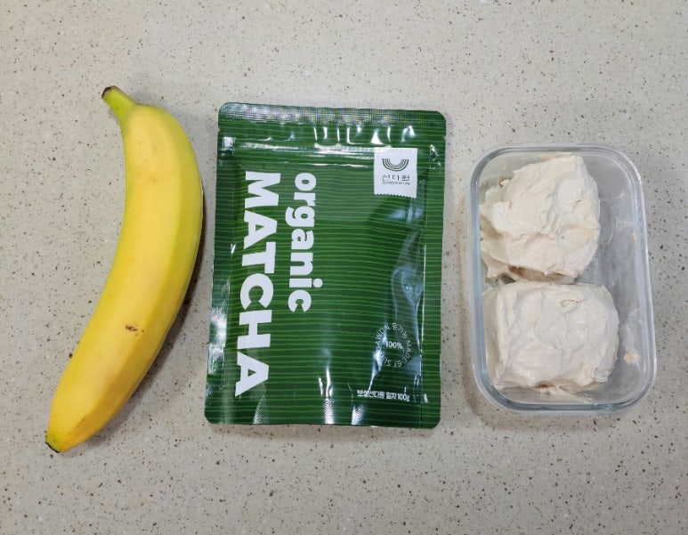2. 바나나, 말차 가루, 두유 그릭 요거트 준비하기. / 유기농. 말차가루 (선다원. 국내산)