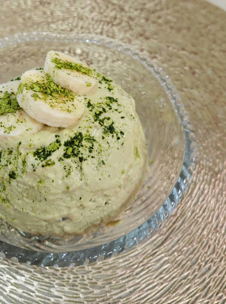 9. 바나나,두유그릭 요거트,말차가루~3가지 섞어서 아이스크림 틀 용기에 담기. 냉동실에 6시간 이상 넣어두기.
