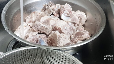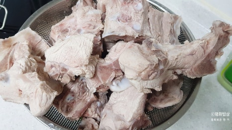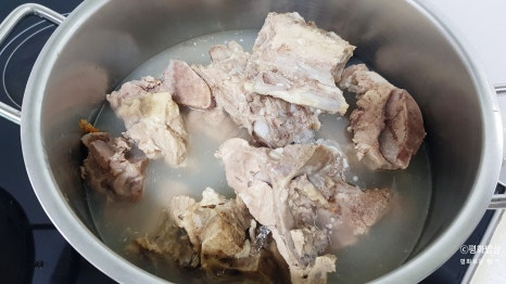 돼지등뼈 삶은 물을 바로 요리해 먹을 수 없다.