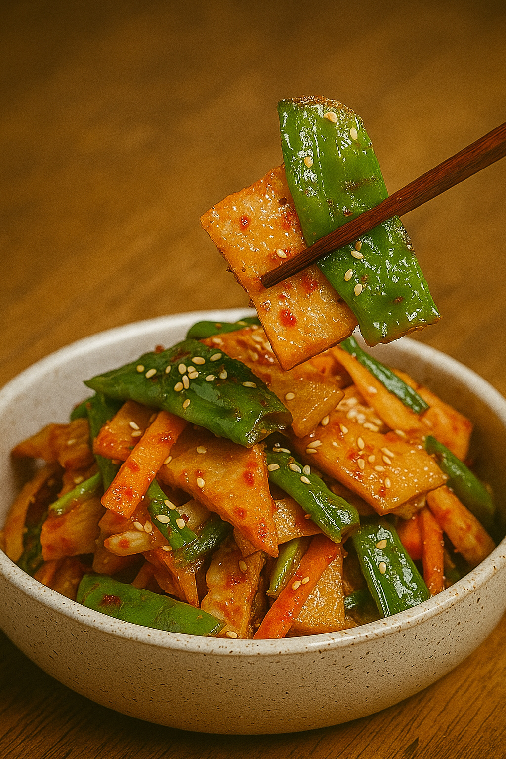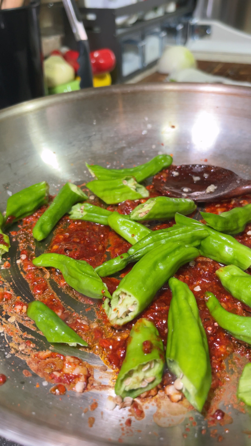 (꽈리고추를 자르지 않고 통으로 사용하실 경우에는 포크나 이쑤시개로 숨구멍을 넣어주세요)
