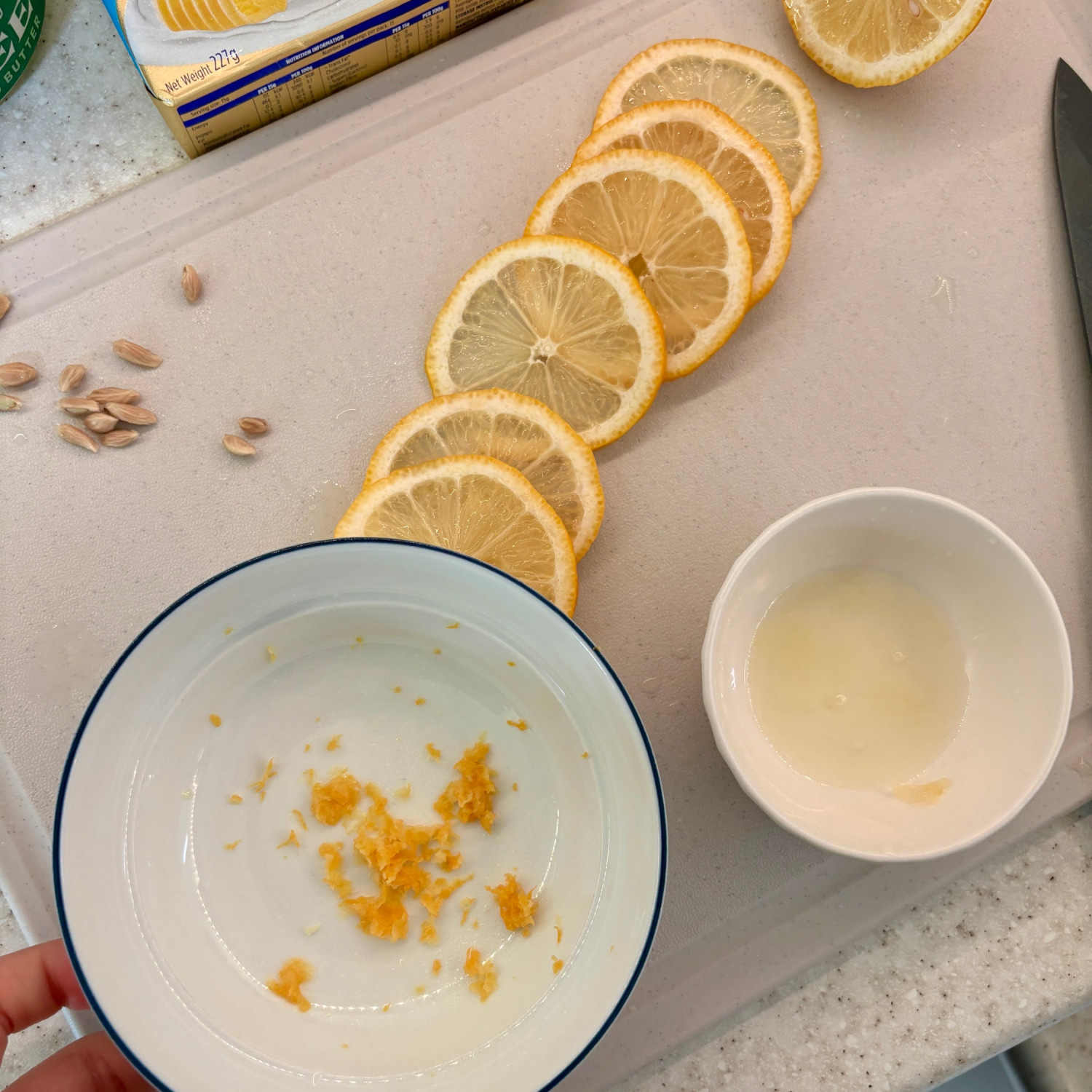 1. 레몬의 가장 통통한 부분을 한 조각씩 잘라서 냉동실에 보관하면 다른 요리에 올리기 편해요.