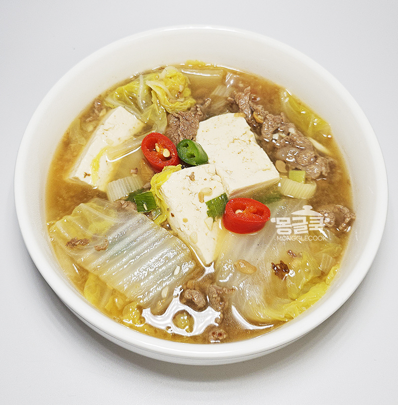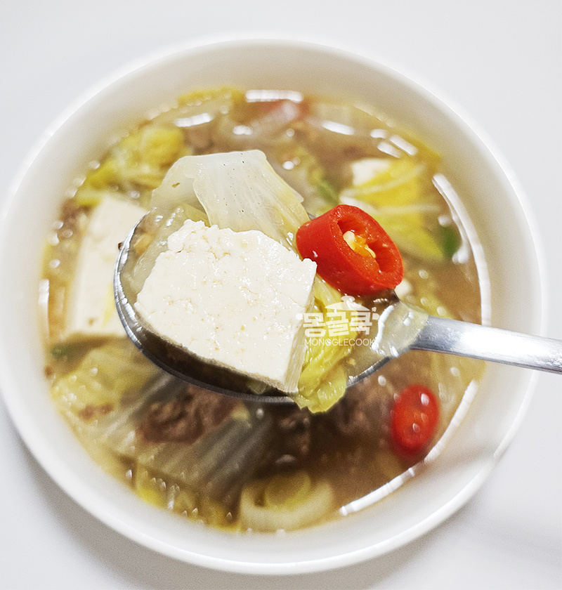 냉장고 속 배추와 자투리 소고기가 있다면, 어렵지 않게 한 냄비 끓일 수 있는 메뉴라 더 매력적이에요.