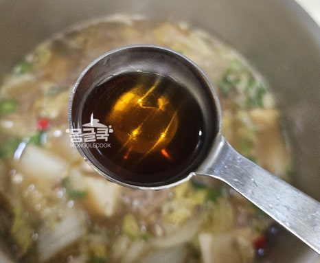 맛을 보고 싱겁다면 국간장이나 멸치 액젓으로 간을 맞추세요