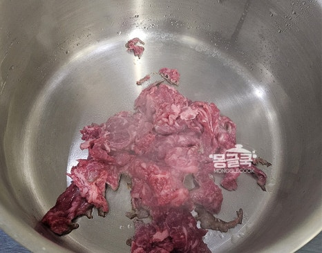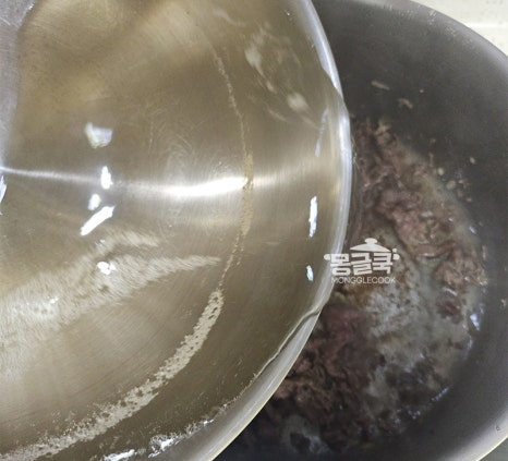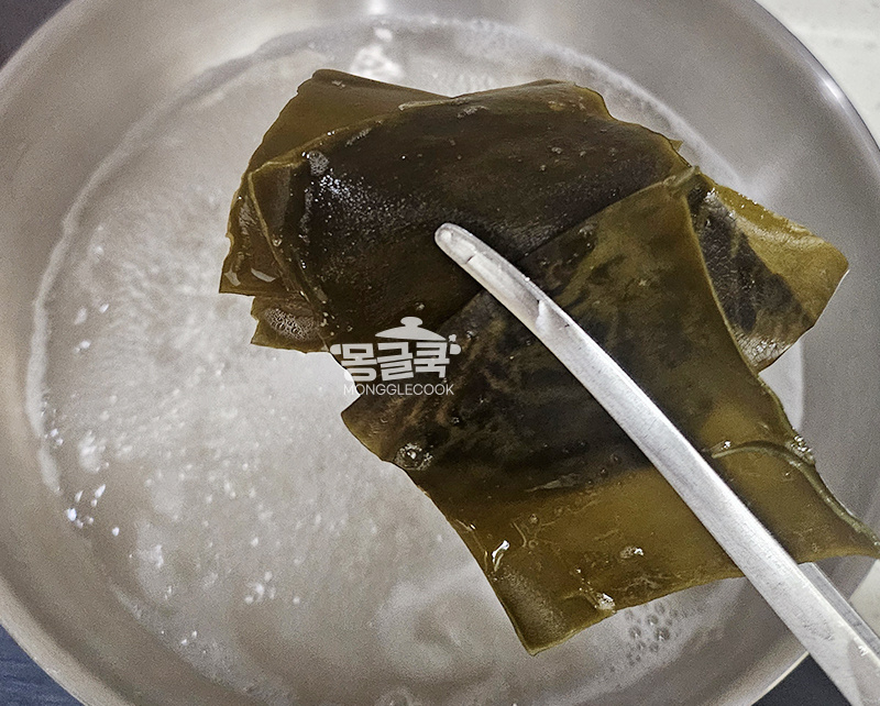 끓이다 보면 거품이 올라올 수 있는데, 깔끔한 국물을 위해 국자나 숟가락으로 살짝 걷어내 주세요.