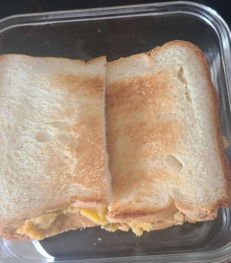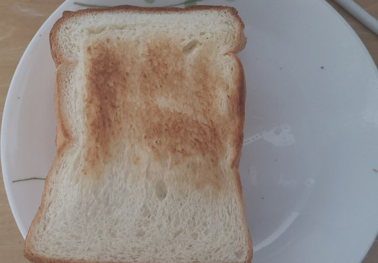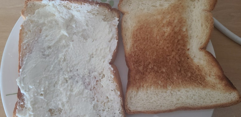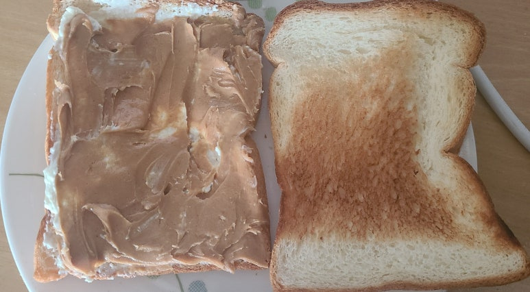 식빵 2쪽, 크림치즈 조금, 땅콩잼 조금.