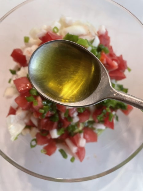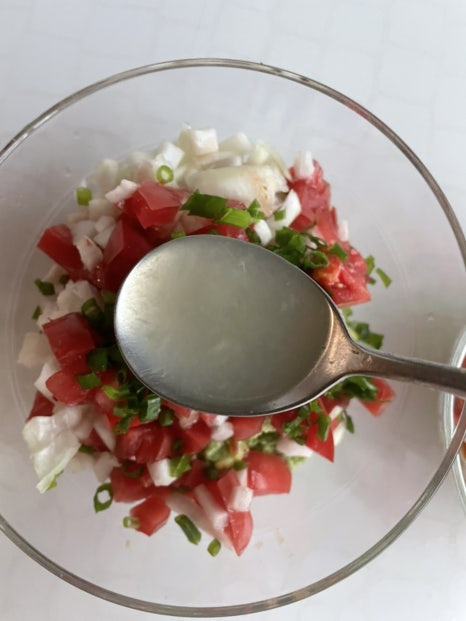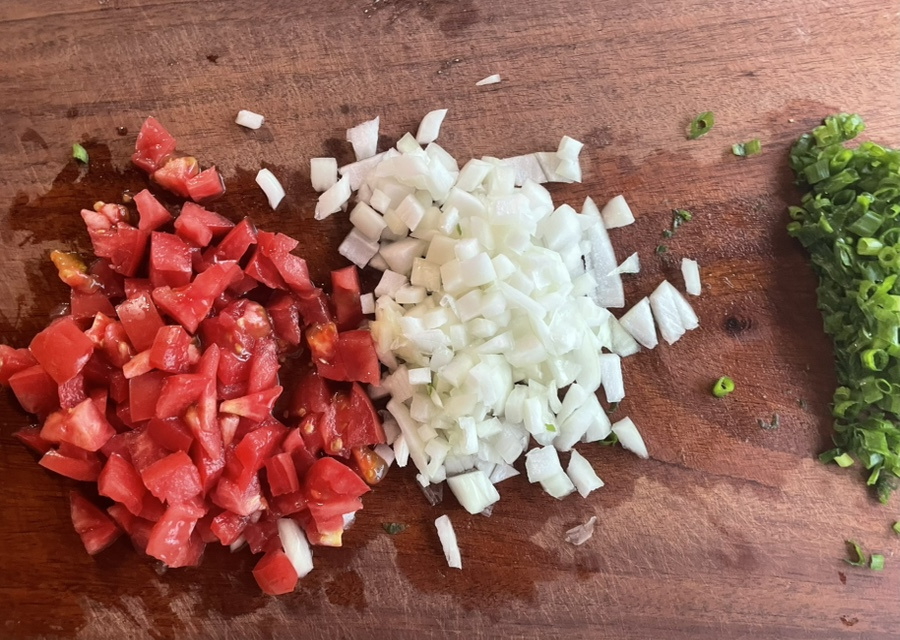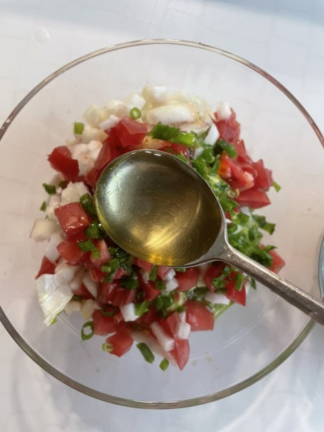 다진 양파 1큰술 , 다진 빨간 파프리카 1큰술 , 노란 파프리카 1큰술 , 다진 쪽파 약간