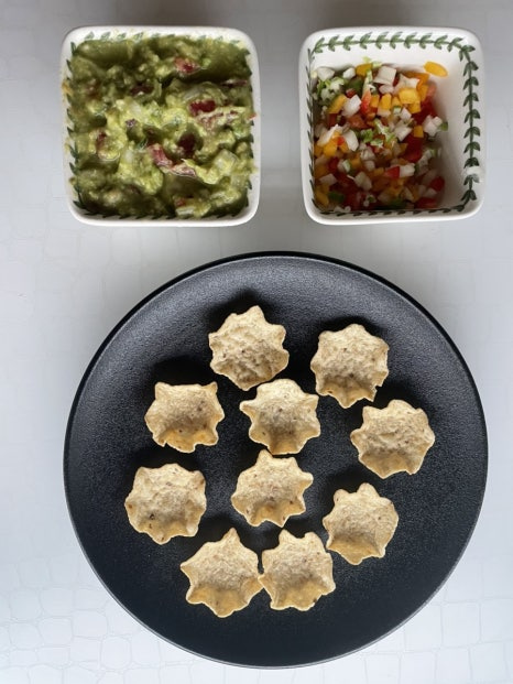 베이스가 멋있고 예쁘니 과카몰리 소스와 다진 야채를 약간 올려주기만 해도 너무 훌륭한 간식이나 술안주가 되요.