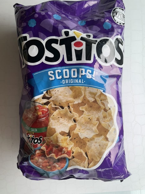 Tostitos 또띠아칩인데 낫쵸칩보다 더 얇고 바삭해서 부담없이 먹을 수 있고, 씹을 때마다 귀에 들리는 크리스피한 소리도 경쾌하고 무엇보다 별모양으로 작은 용기처럼 되어 있어서 이름도 scoops ~