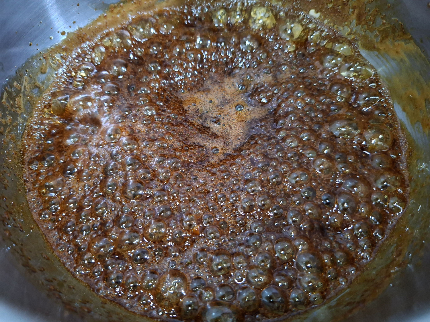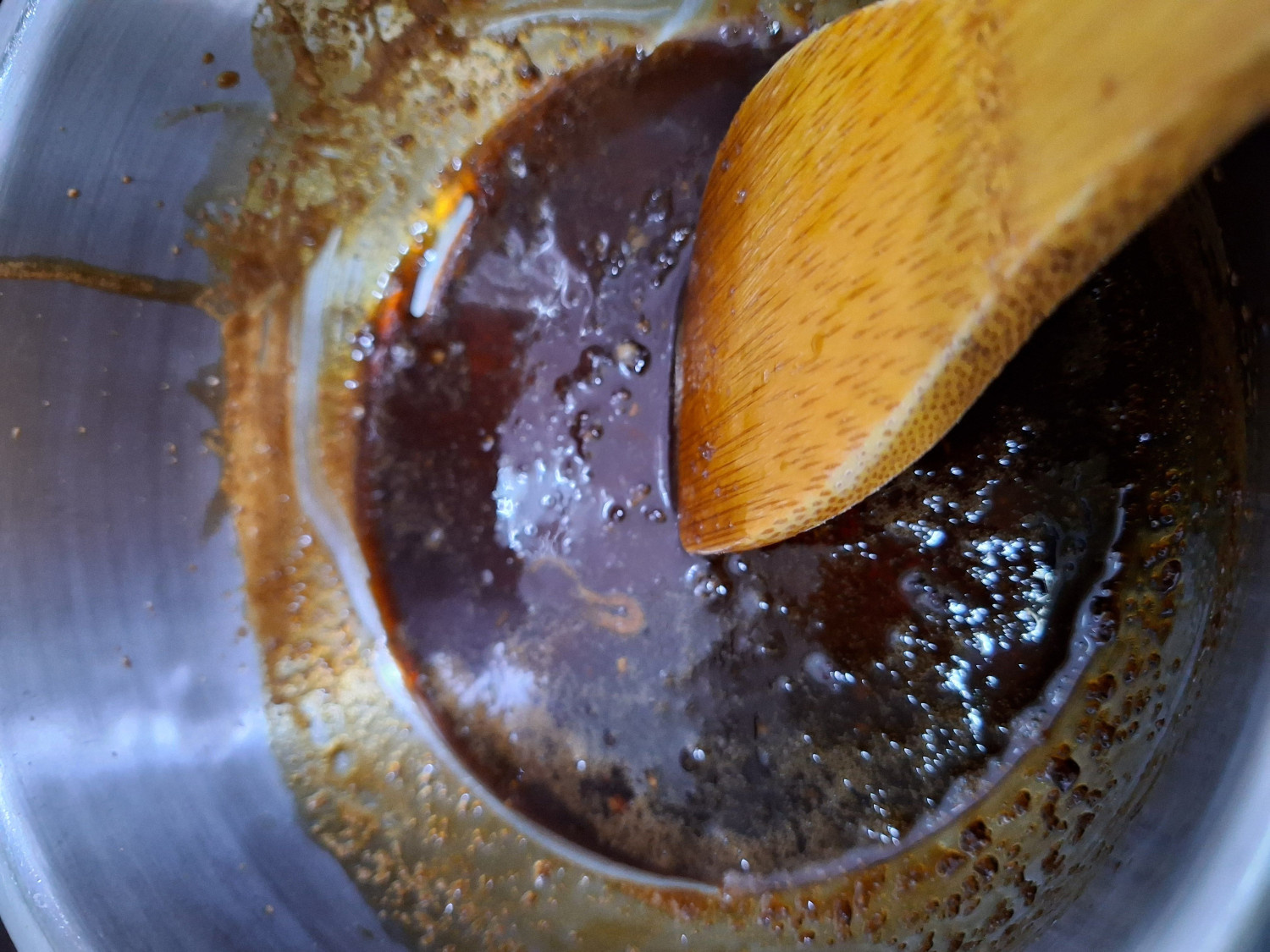 불을 끄고 잠시 식혀주세요. 소스는 너무 심각하게 묽지만 않으면 됩니다.
